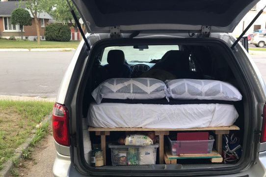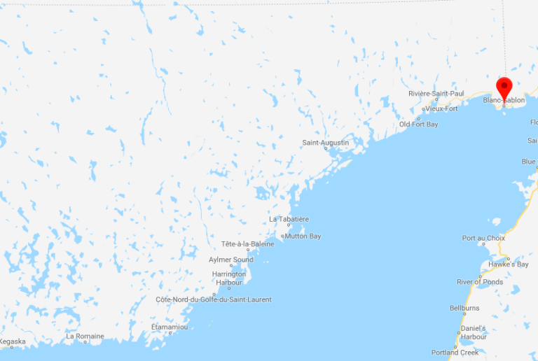 Arrivés ici, nous ne trouvons personne à l’office des tickets pour le ferry, nous avions pourtant pensé prendre celui de 18h. Nous retournons sur nos pas pour aller à « l’office de tourisme » (qui est plutôt une mini bicoque située au milieu de nul part). Là encore… c’est fermé ! Pourtant, il est censé être seulement 16h ici… nous finissons par trouver un centre de service. Une femme qui parle français (Blanc Sablon a beau être au Québec, sa situation géographique éloignée de la province mais toute proche du Labrador fait que la plupart des habitant parlent seulement anglais) nous indique que le prochain ferry partira seulement à 6h le lendemain matin. Douche froide pour nous, qui pensions enfin arriver à Terre-Neuve le soir même. Nous nous résignons donc à passer la nuit ici dans notre van. On pourrait s’attendre à ce que Blanc Sablon soit une grosse ville, c’est la dernière du Québec à l’Est, et la seule à bénéficier d’un ferry pour Terre-Neuve… Détrompez-vous. La ville est très étendue mais finalement minuscule, une ville « du nord » comme nous en avons vu au Labrador, avec les poubelles maintenues dans des coffres en bois fermés par des cadenas pour éviter d’être éventrées par les ours…