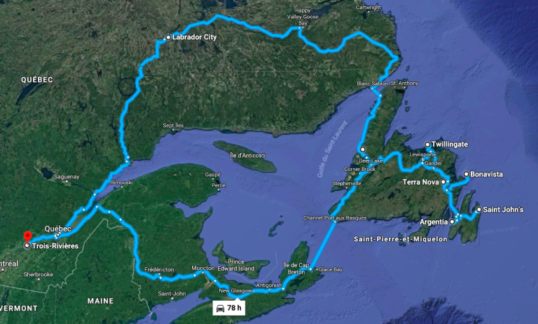 C’est donc après avoir traversé 2 provinces, 3 fuseaux horaires et parcouru 2276 km en van que nous arrivons à Blanc Sablon pour prendre le ferry jusqu’à Terre Neuve et commencer ENFIN les vrais vacances (finis les lever à 5h du matin pour enquiller les kilomètres !).