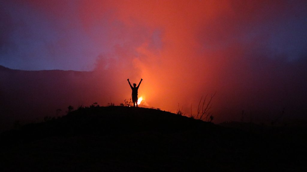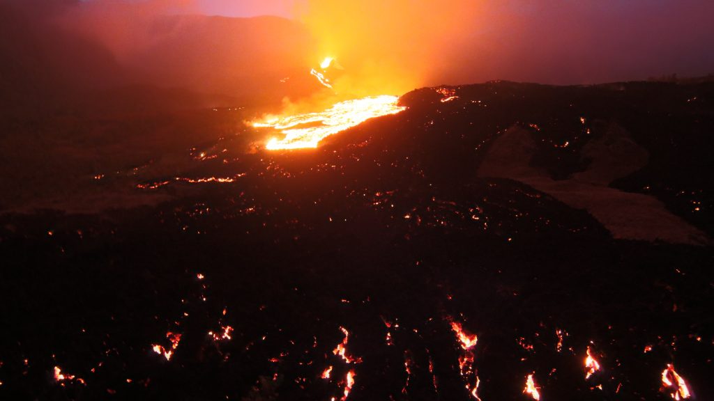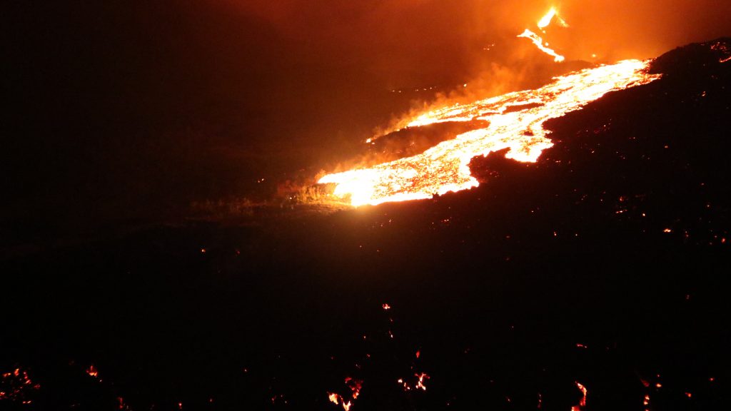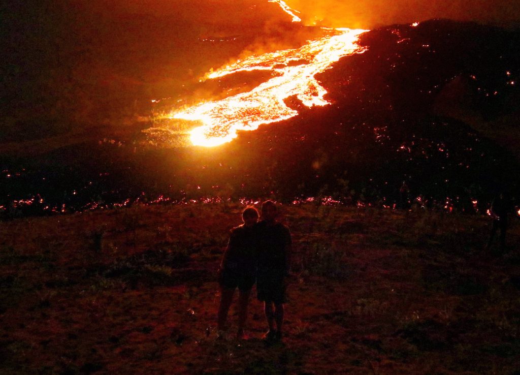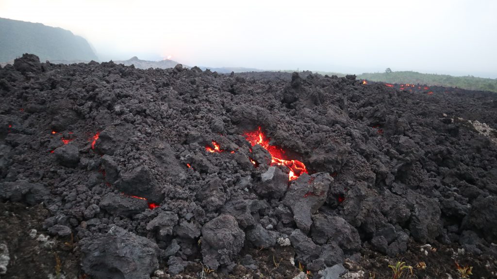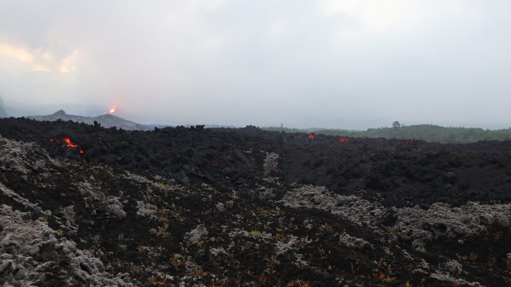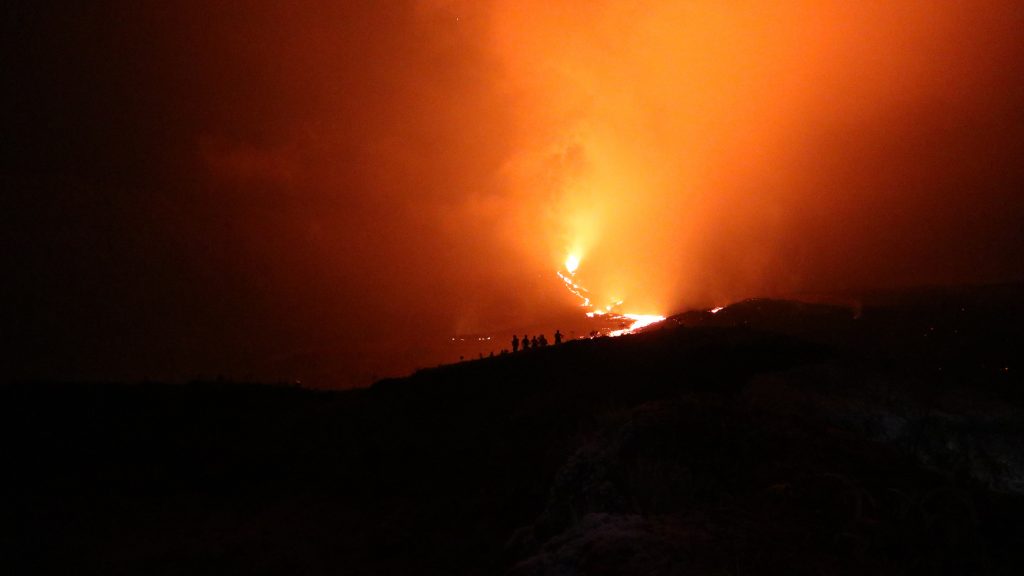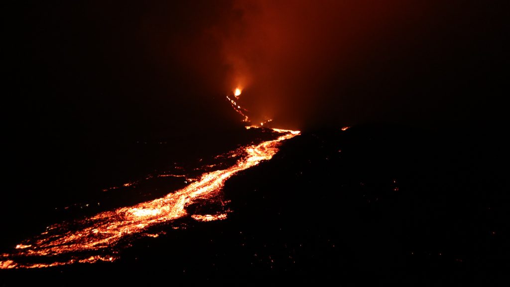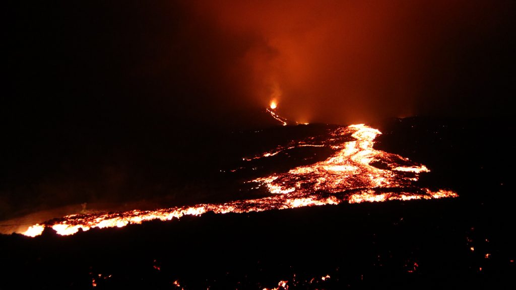 Je ne saurais vous décrire cette sensation que d’être face à un spectacle unique, que peu de gens peuvent avoir la chance d’observer une fois dans leur vie. Cette sensation de rareté, mélangée à l’excitation, à la stupeur, à l’émerveillement. Face à la coulée de lave, nous nous sommes assis quelques instants, avec les courageux qui étaient montés peu avant nous, tous dans le silence, à en prendre plein les yeux et admirer quelque chose qui nous dépasse : le spectacle de la nature.