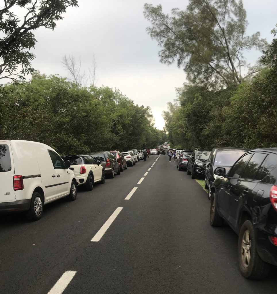 Ce vendredi 25 octobre 2019 à 14h40, le Piton de la Fournaise, volcan de l’île de la Réunion culminant à 2632m d’altitude est entré pour le 5ème fois de l’année en éruption. Il s’agit de l’un des volcans les plus actifs et les plus surveillés de la planète. Il constitue 40% de l’ile de la Réunion dans sa partie Sud-Est. Lorsque j’ai appris cette soudaine éruption en rentrant du travail, j’avoue avoir tout de suite tanné Thibault pour que nous nous y rendions. Imaginer pouvoir admirer un tel spectacle me mettait dans un tel état d’excitation que je ne voulais pas attendre plus longtemps pour ça ! Sa journée ayant été longue et laborieuse, il a négocié pour repousser cette sortie au volcan au lendemain. Sur les conseils d’une amie vivant à La Réunion depuis plusieurs années, il faudrait nous rendre au volcan au lever ou au coucher du soleil, de manière à pouvoir l’admirer de jour ET de nuit. Nous avons opté pour nous y rendre le samedi en fin de journée. Le Volcan étant à environ 1h30 de route de Saint-Denis, en longeant la route littoral Est (la RN2) nous sommes arrivés sur les lieux vers 17h15, soit un peu plus d’une journée après le début de l’éruption. A en voir à quelle distance nous avons dû nous garer du volcan, nous n’étions visiblement pas les seuls à vouloir en prendre plein les yeux…