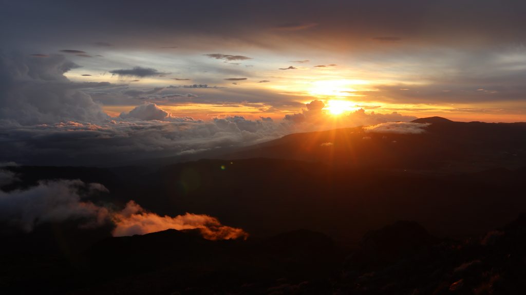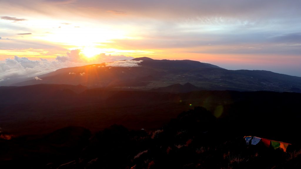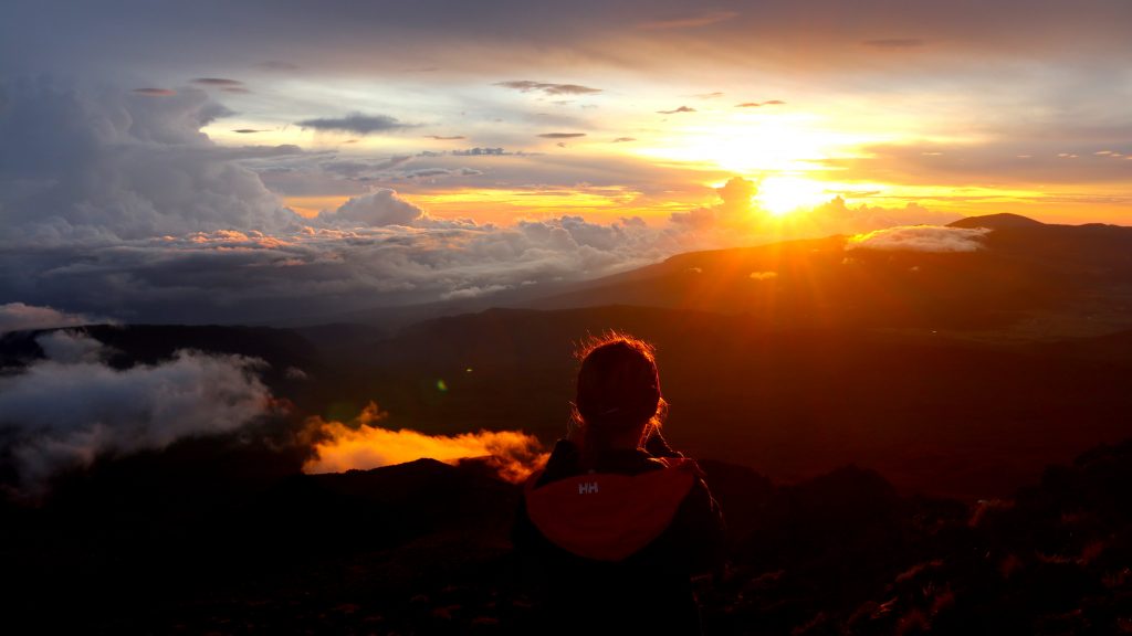 Le Piton des Neiges est connu pour ses magnifiques levers de soleil, c’est pour cela que les randonneurs s’organisent en général pour arriver au sommet entre 4h30 et 5h du matin pour ne pas manquer le spectacle. La plupart du temps, les touristes et marcheurs occasionnels choisissent d’effectuer l’ascension en deux temps, avec un arrêt pour la nuit au Gîte de la Caverne Dufour, qui se situe à 5km du départ de randonnée et à 3km du sommet. L’ascension est en effet déjà très sérieuse dans les premiers lacets et jusqu’à l’arrivée au Gîte. Il faut donc garder des forces pour la suite si l’on ne prévoit pas d’y passer la nuit !