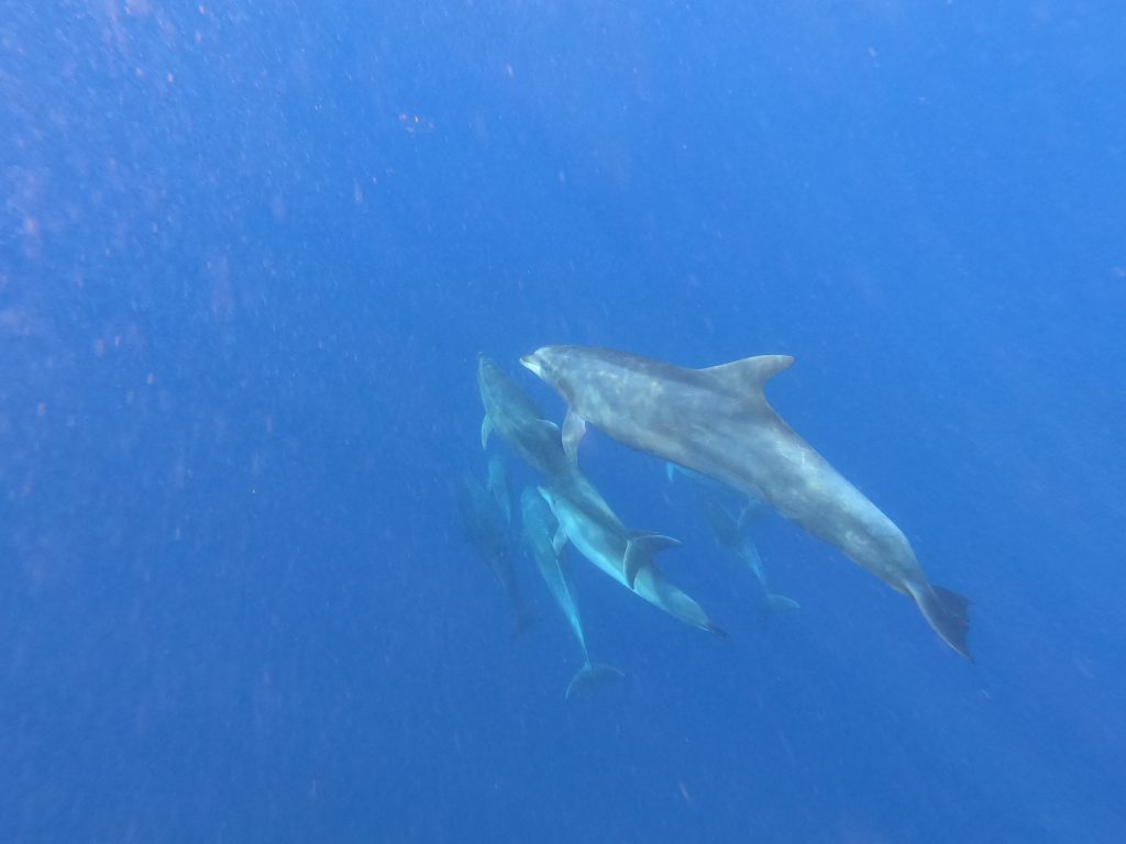 Notre petit groupe a pu apprécier ces moments rares, de partage, avec ce groupe de dauphins souffleurs. Nous avons essayé de nager près d’eux, mais ils sont bien évidemment beaucoup plus rapides que nous ! Une fois la tête sous l’eau, nous pouvions entendre leurs sifflements perçant, incessants… magique.