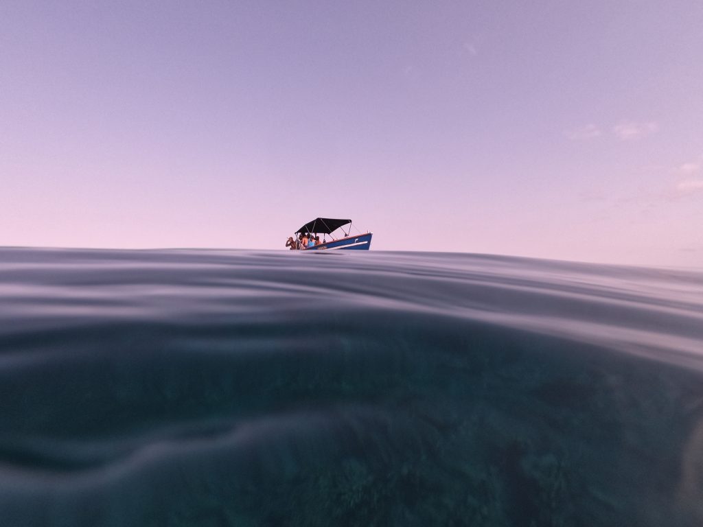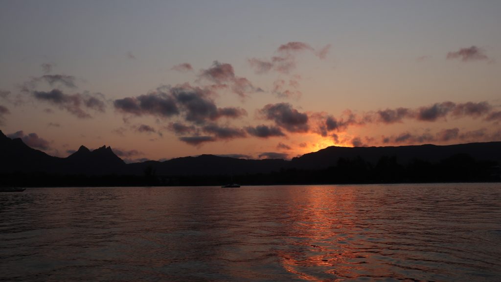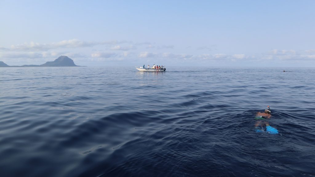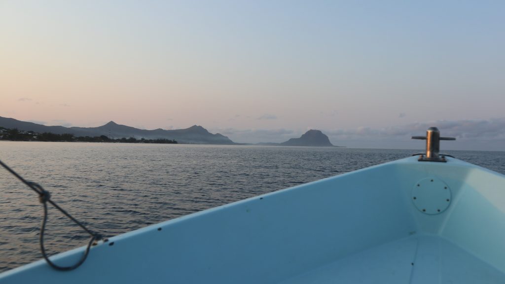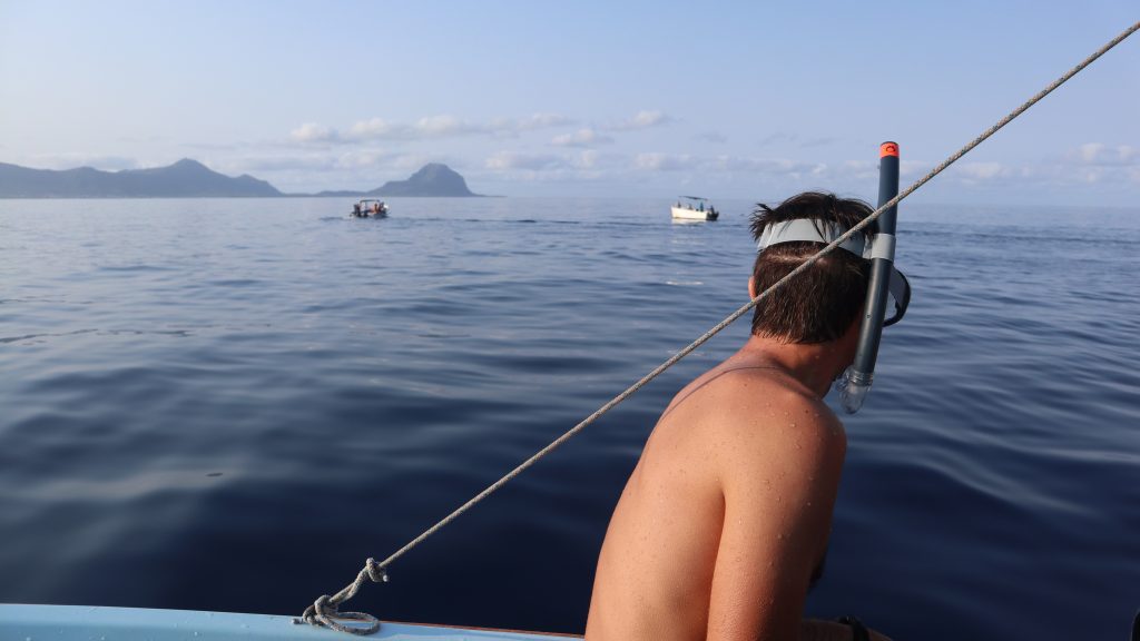 Nous nous sommes rendus pour 5h30 du matin sur la plage publique de Tamarin, à environ 25 min du Morne, sur la côte Ouest de l’île. Le soleil n’était pas encore levé, mais il faisait déjà chaud. Sur la plage, nous avons retrouvé Cédric, notre capitaine pour la journée, ainsi qu’une famille de 4 personnes et un groupe de 5 personnes. Cédric le capitaine était accompagné par Ryan pour l’aider à manœuvrer le bateau et prendre soin de nous tous.
