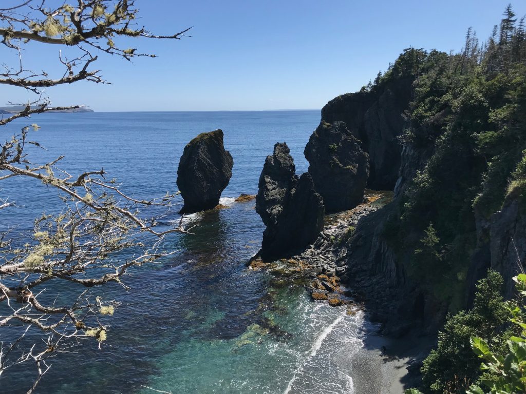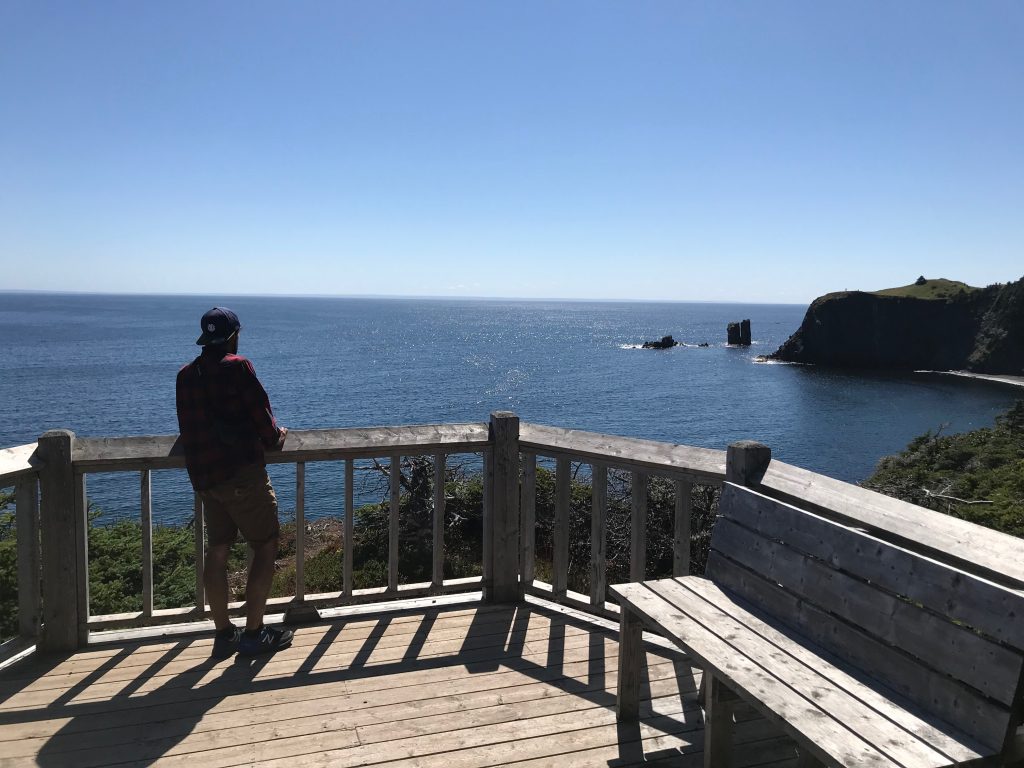 Après notre courte escapade à Terra Nova National Park, nous reprenons la route pour descendre un peu plus au sud sur l’île de Terre-Neuve. La veille, une voyageuse de Colombie Britannique m’avait parlé d’un trail magnifique, plus au sud, dans la direction de Bonavista : le Skerwink Trail. Nous décidons, avant d’aller à St John’s, capitale de Terre-Neuve, de nous y arrêter. Cela nous fait faire un détour d’environ 1h30 pour notre route jusqu’à St John’s mais ce trail est classé parmi les plus beaux d’Amérique du Nord.