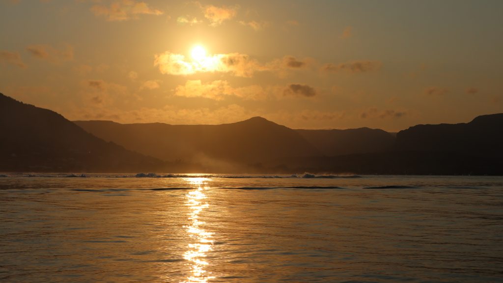 Au plus nous avancions dans l’océan, au plus nous pouvions admirer ce magnifique panorama avec les montagnes, l’eau, et le soleil se levant en arrière. Un magnifique premier aperçu de tout ce qui nous attendrait alors durant cette journée.