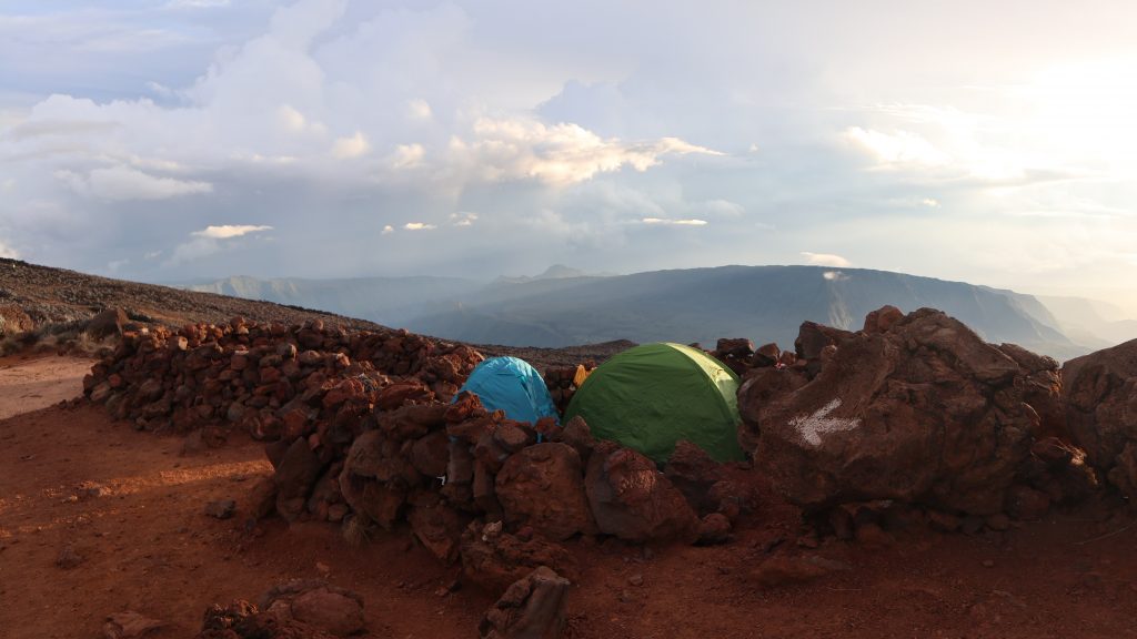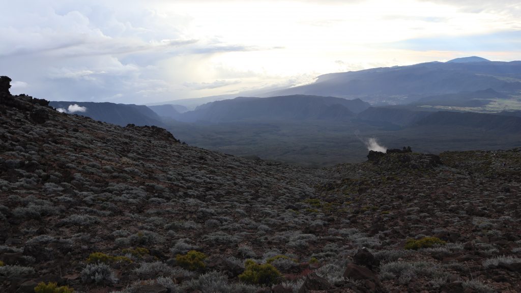 Notre bivouac, au petit matin, au sommet du Piton des Neiges