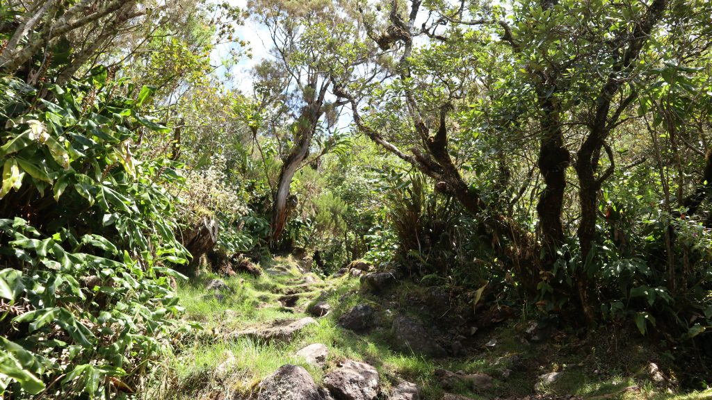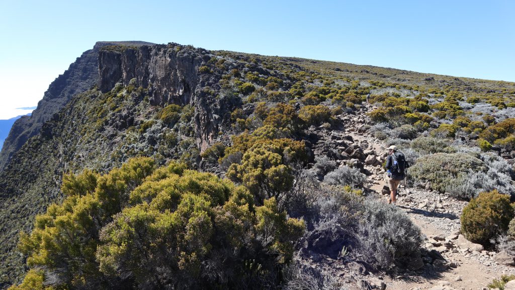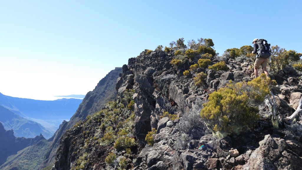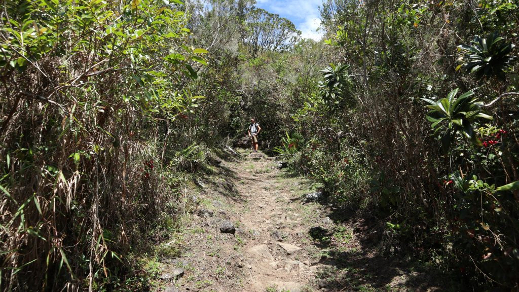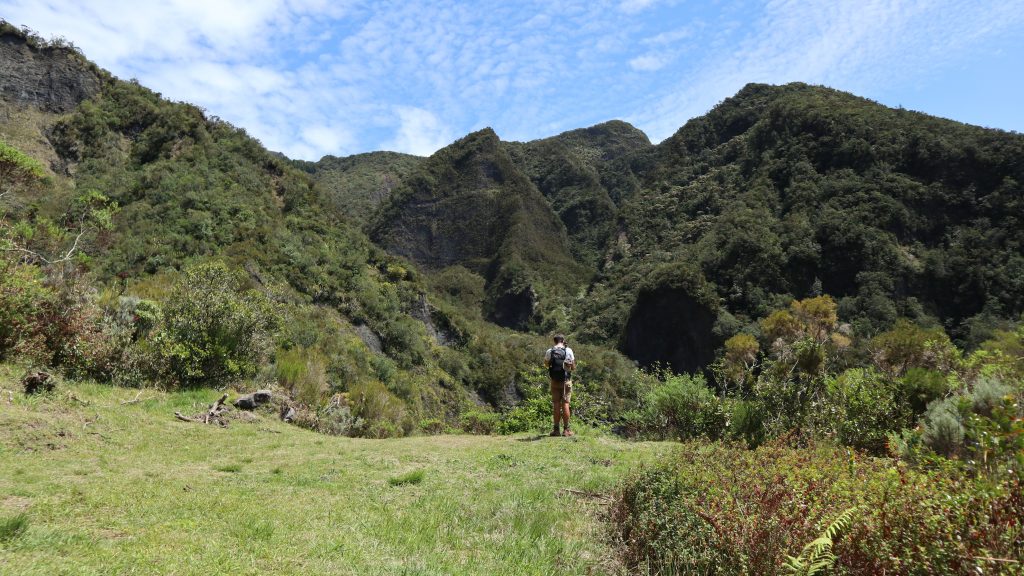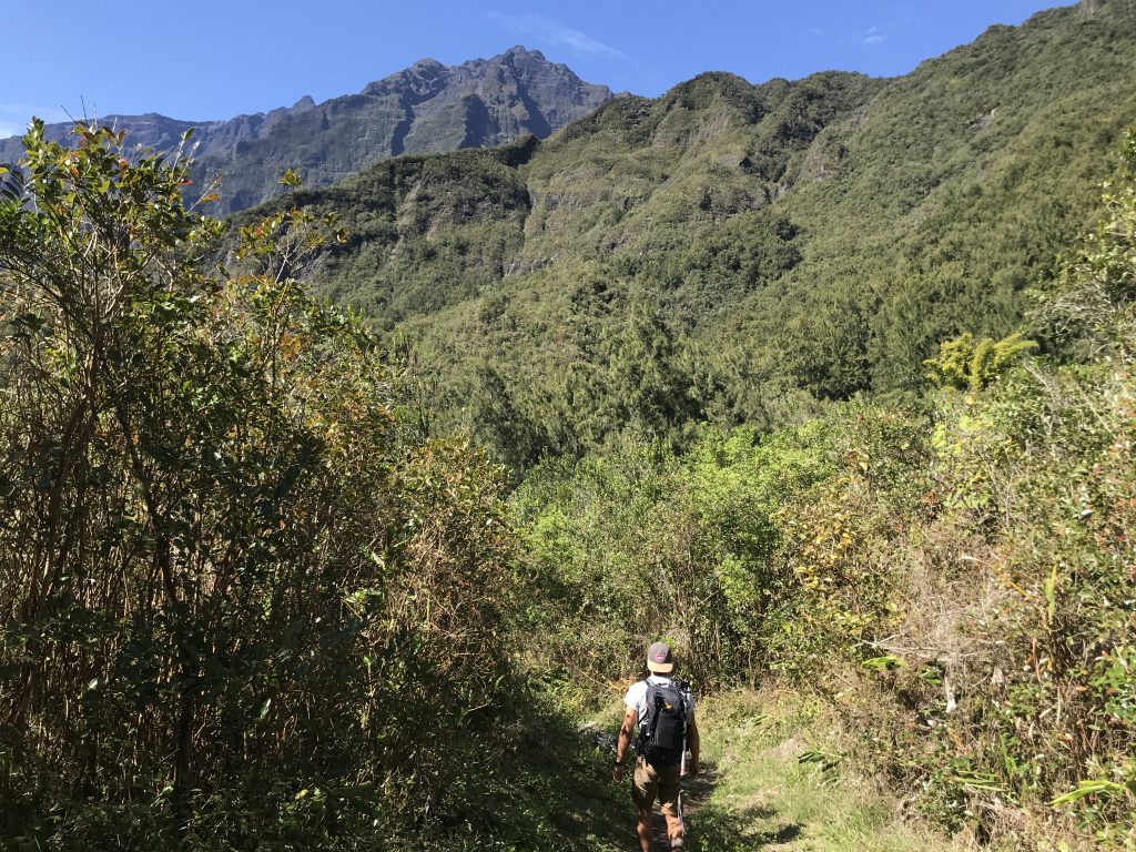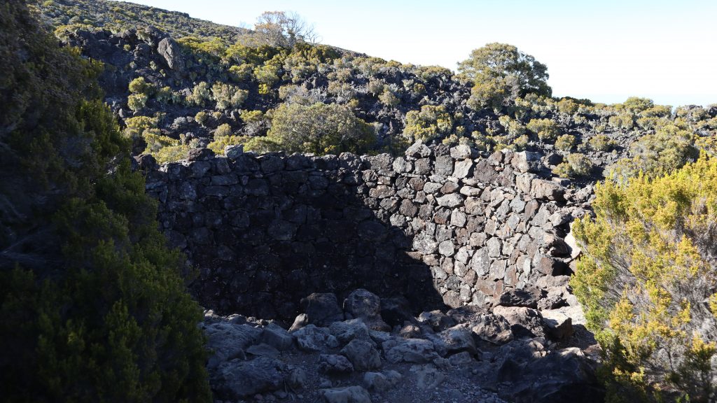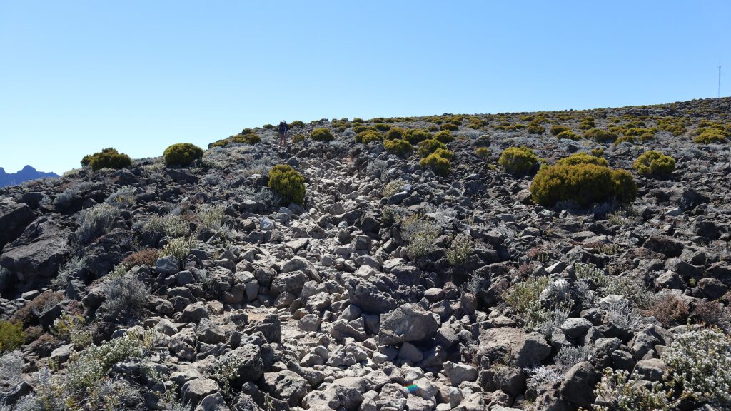 Des barrages et des policiers se situaient juste en amont du Grand Brûlé. Nous avons donc du nous garer et finir la route à pieds (les autorités laissant à ce moment-là les piétons accéder au volcan) jusqu’au bas des Grandes Pentes. Nous avons marché 2km sur la route.