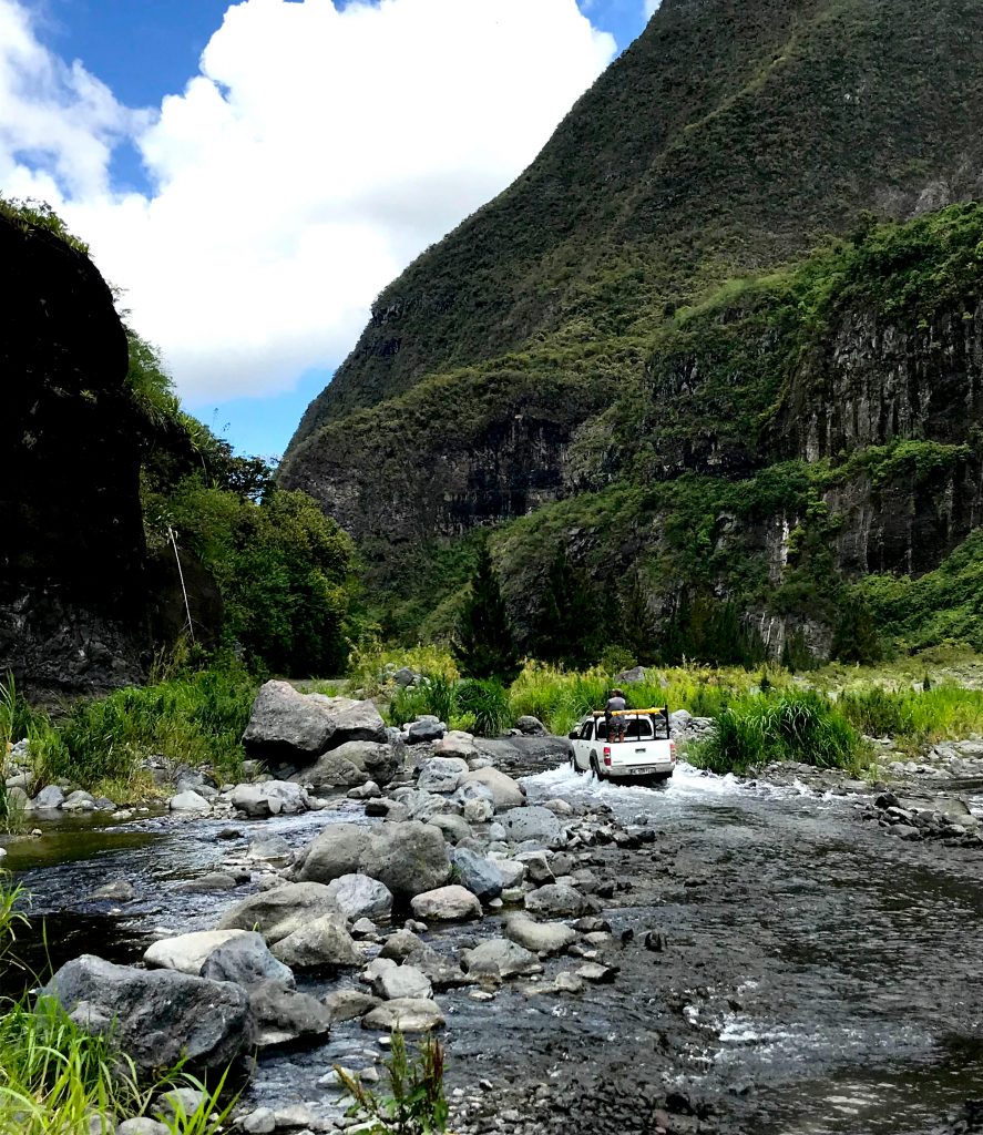 Toutefois, il est aussi possible de ne pas se prendre la tête et de fournir moins d’efforts, en parcourant les premiers 8km de ce chemin avec un chauffeur, en 4×4. Cela permet d’éviter toutes les traversées de rivière et ce long chemin à parcourir sous un soleil de plomb puisqu’il n’y a pas d’ombre. Les chauffeurs de 4×4 proposent de prendre les personnes, moyennant une somme d’argent, au début de la randonnée, et les emmènent à l’entrée du cirque de Mafate.