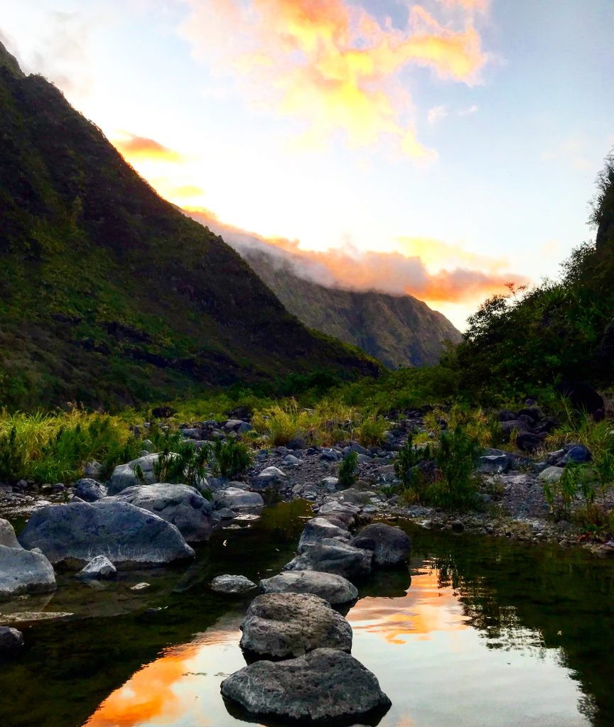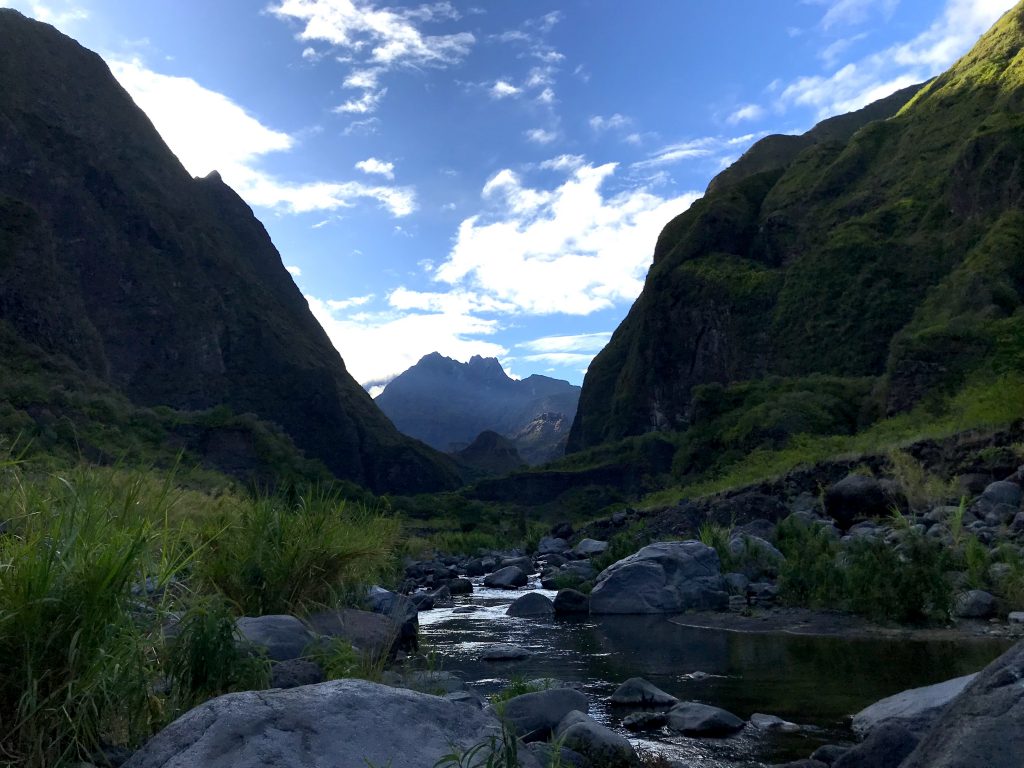 Il y a deux semaines, nous avons décidé de partir en trail sur un sentier incontournable de l’île de la Réunion : la canalisation des Orangers. Il est très connu des habitants et fait le bonheur des touristes pour deux raisons : il permet d’entrer dans le cirque de Mafate et offre de magnifiques points de vue sur toute sa longueur, mais en plus de ça, c’est l’un des rares (très rare…) chemin de l’île quasiment PLAT. Non, vous ne rêvez pas ! Il est encore possible à La Réunion de trouver un chemin sans trop de dénivelé, et celui-ci est l’un des plus beaux. C’est ce dernier argument qui, un week-end où nous étions un peu fatigués des grosses randonnées bien ardues, nous a convaincu d’aller y faire un « petit » tour, de 20km. L’avantage de la canalisation des Orangers, c’est en effet son accessibilité, pour les marcheurs de tout niveau, permettant de pénétrer, sans trop d’efforts, dans le cirque de Mafate, avec des panoramas grandioses tout du long.
