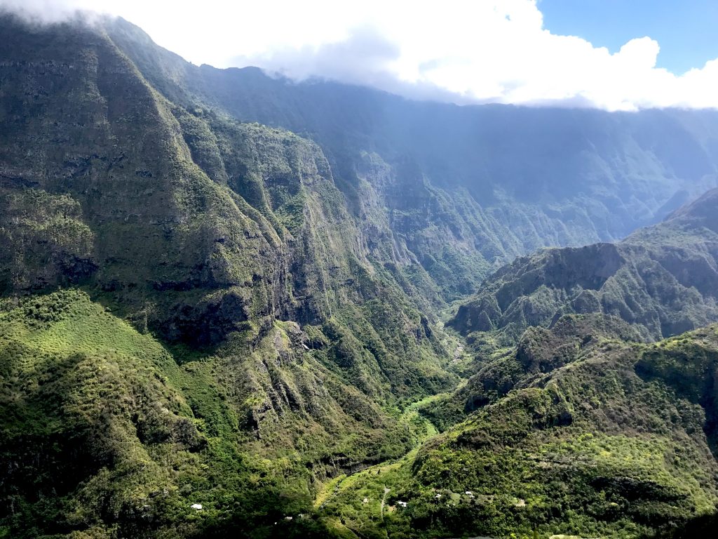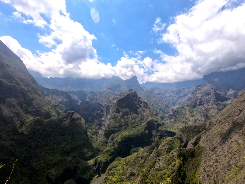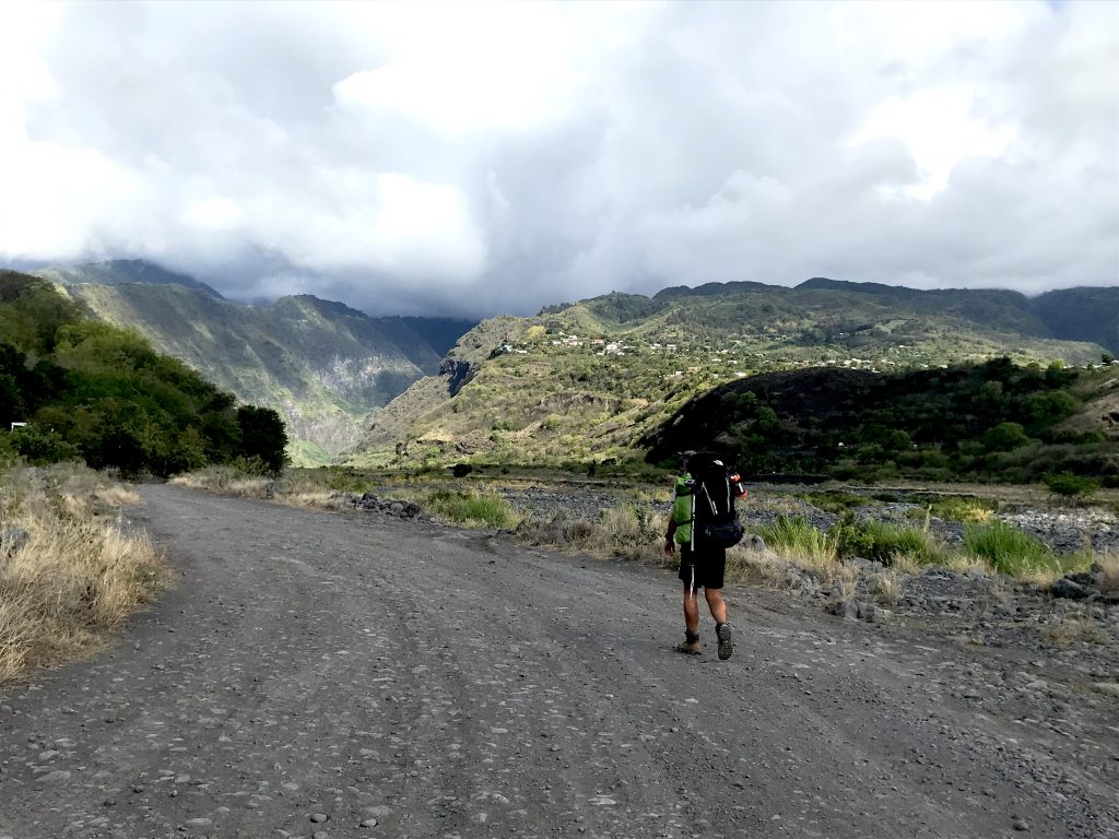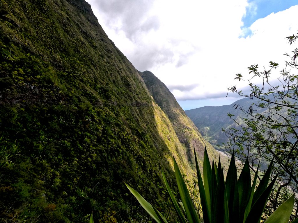 Le chemin s’engouffre petit à petit dans le cirque de Mafate et offre des vues incroyables, qui donnent envie de s’arrêter à chaque minute pour les photographier. Difficile donc de faire un trail en maintenant son rythme ! Nous avons parcouru une vingtaime de kilomètres sur le chemin en courant, tout en appréciant la vue.