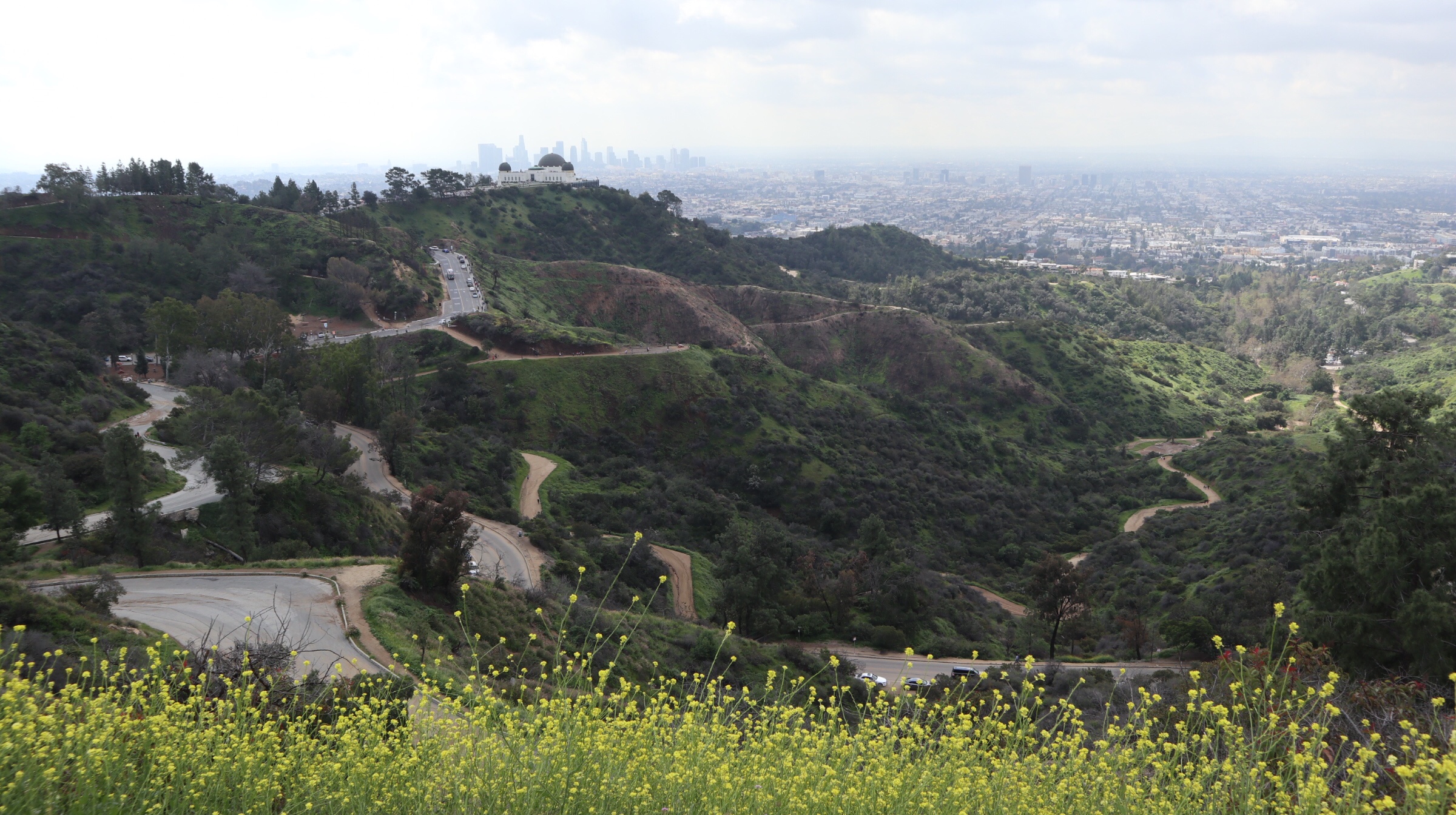 De l’observatoire, nous avons une vue superbe sur la ville, qui devient encore mieux si l’on monte l’un des nombreux chemins de trail juste au dessus, dans les collines de Hollywood.
