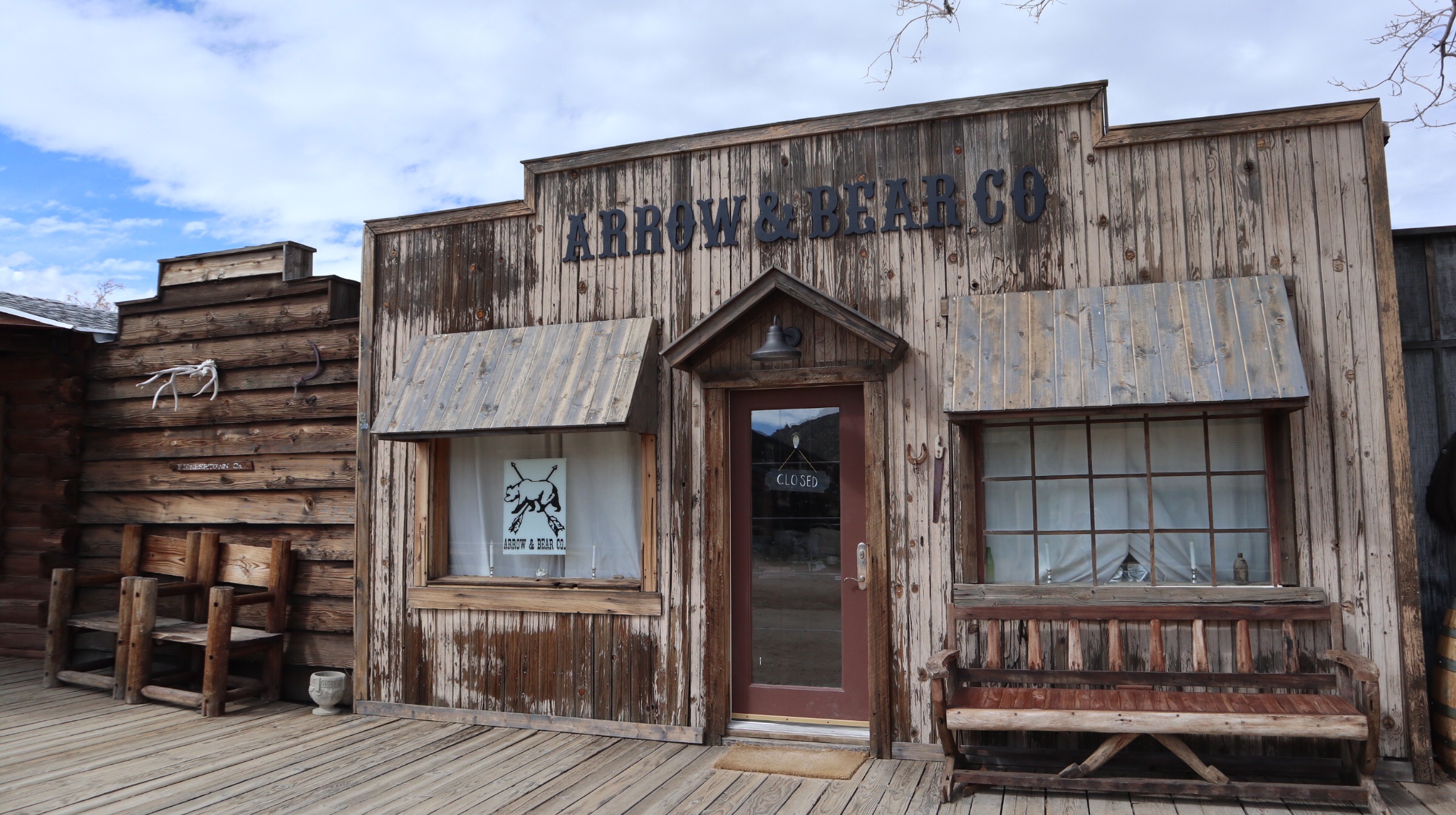 Pioneertown est une ville « fictive » fondée en 1946 par un groupe d’investisseurs hollywoodiens dans le but de recréer un décor de cinéma western. Parmi les investisseurs ayant contribué à créer cette ville, on compte les célèbres Gene Autry ou encore John Wayne, qui tournèrent plusieurs films ici. Plus de 50 films ont été tournés ici entre 1940 et 1950.