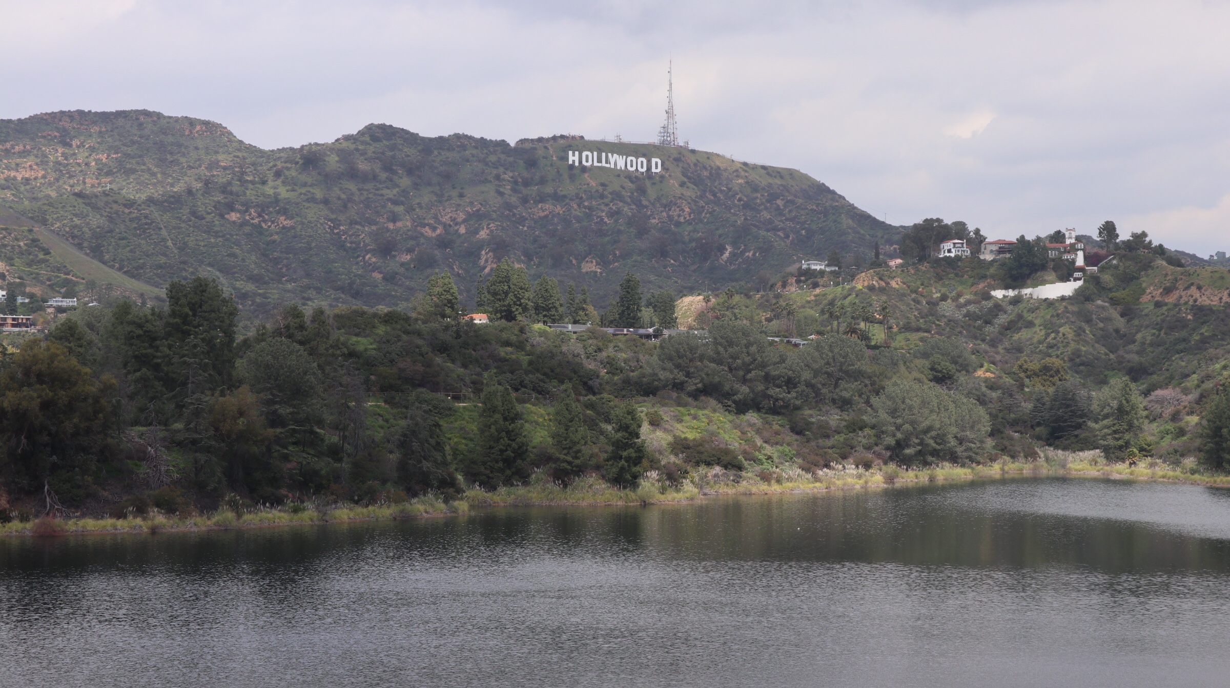 Nous sommes par la suite redescendus par Hollywood Park puis Canyon Lake Drive, qui offrent également de beaux points de vue sur les lettres Hollywood ! Le réservoir d’Hollywood, un peu plus loin en redescendant la colline, est également sympa :