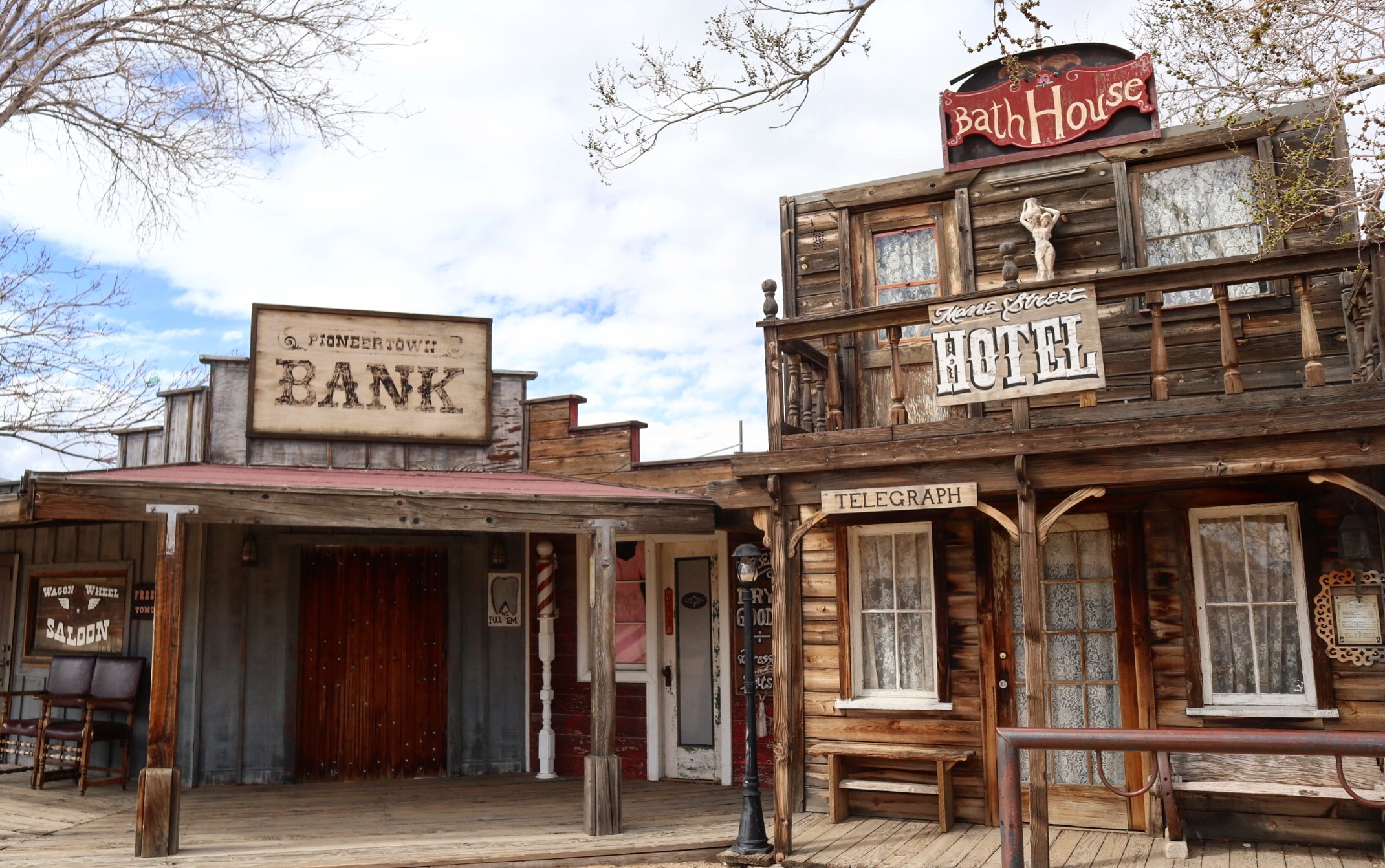 S’y rendre : la ville la plus proche est Yucca Valley, située juste après le parc de Joshua Tree. Pioneertown se trouve perdu dans le désert, à environ 15 minutes de route de la ville. Très facile d’accès, il s’agit en fait d’une grande rue, qui recrée un décor de 1870 et toute l’atmosphère western et cowboy qui y est rattachée.