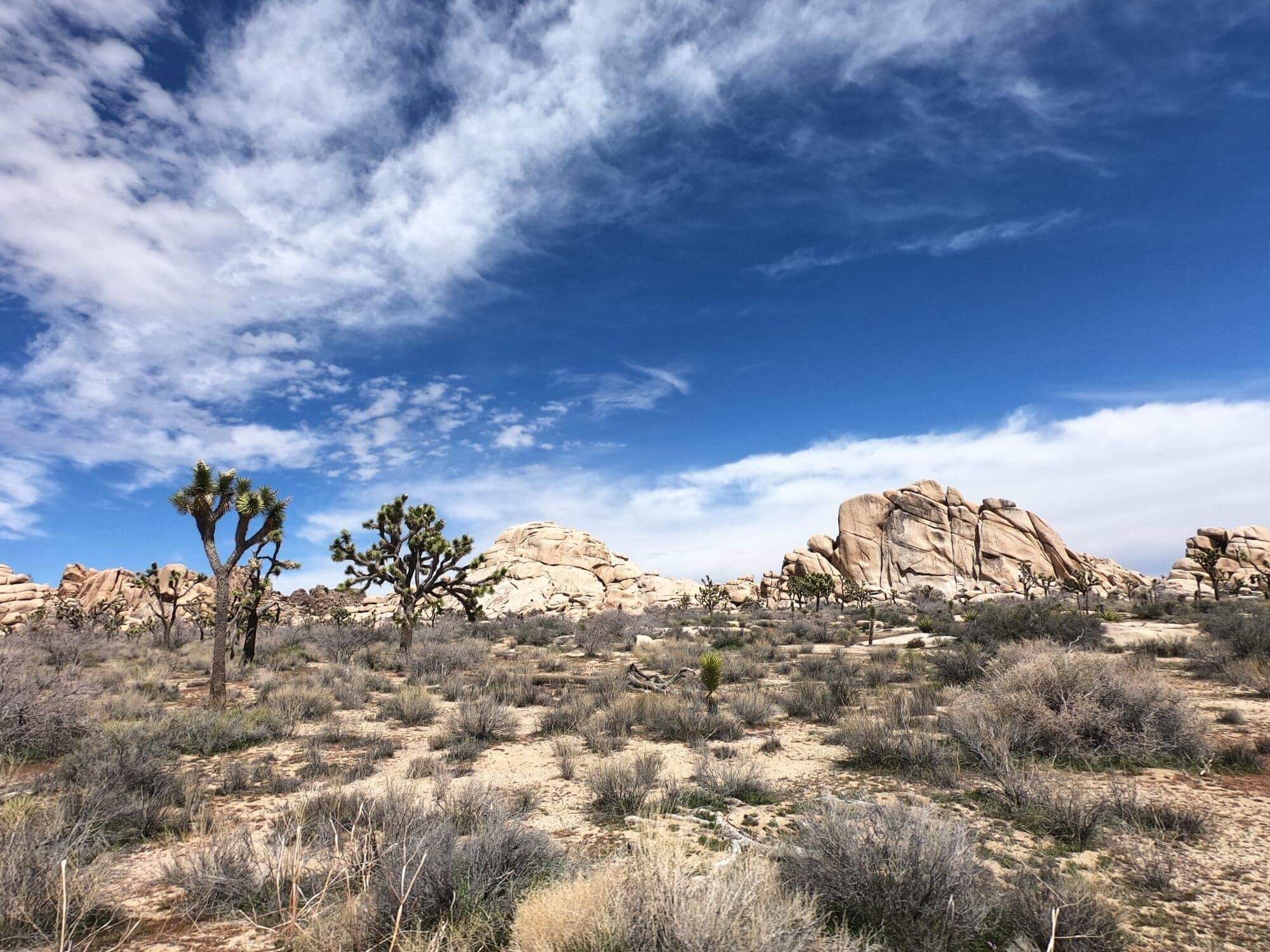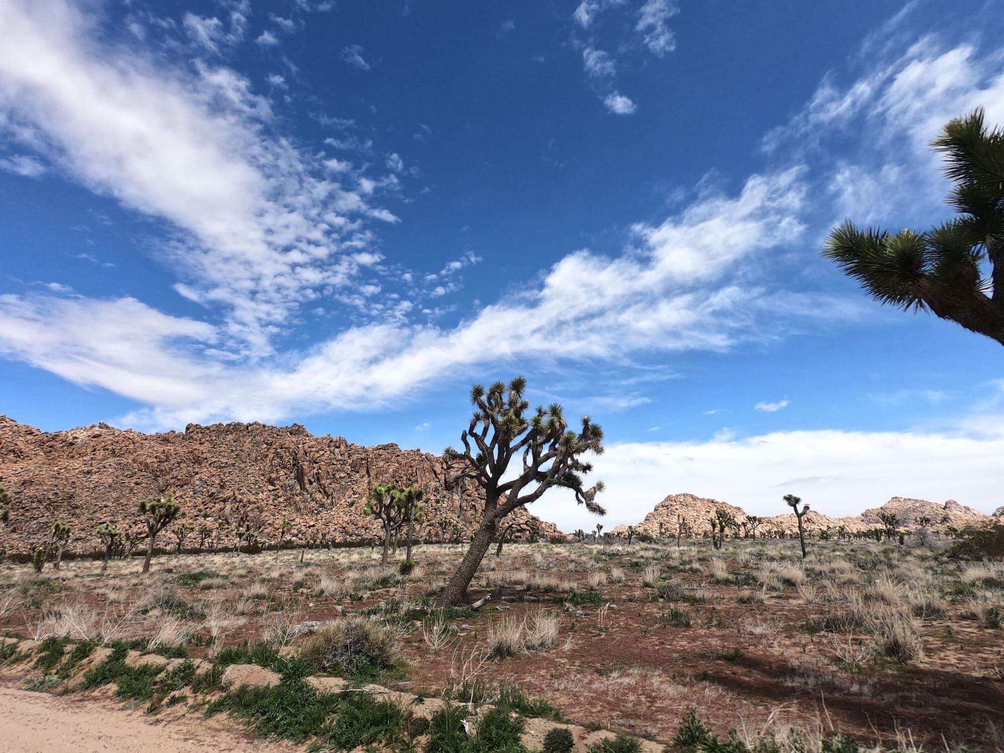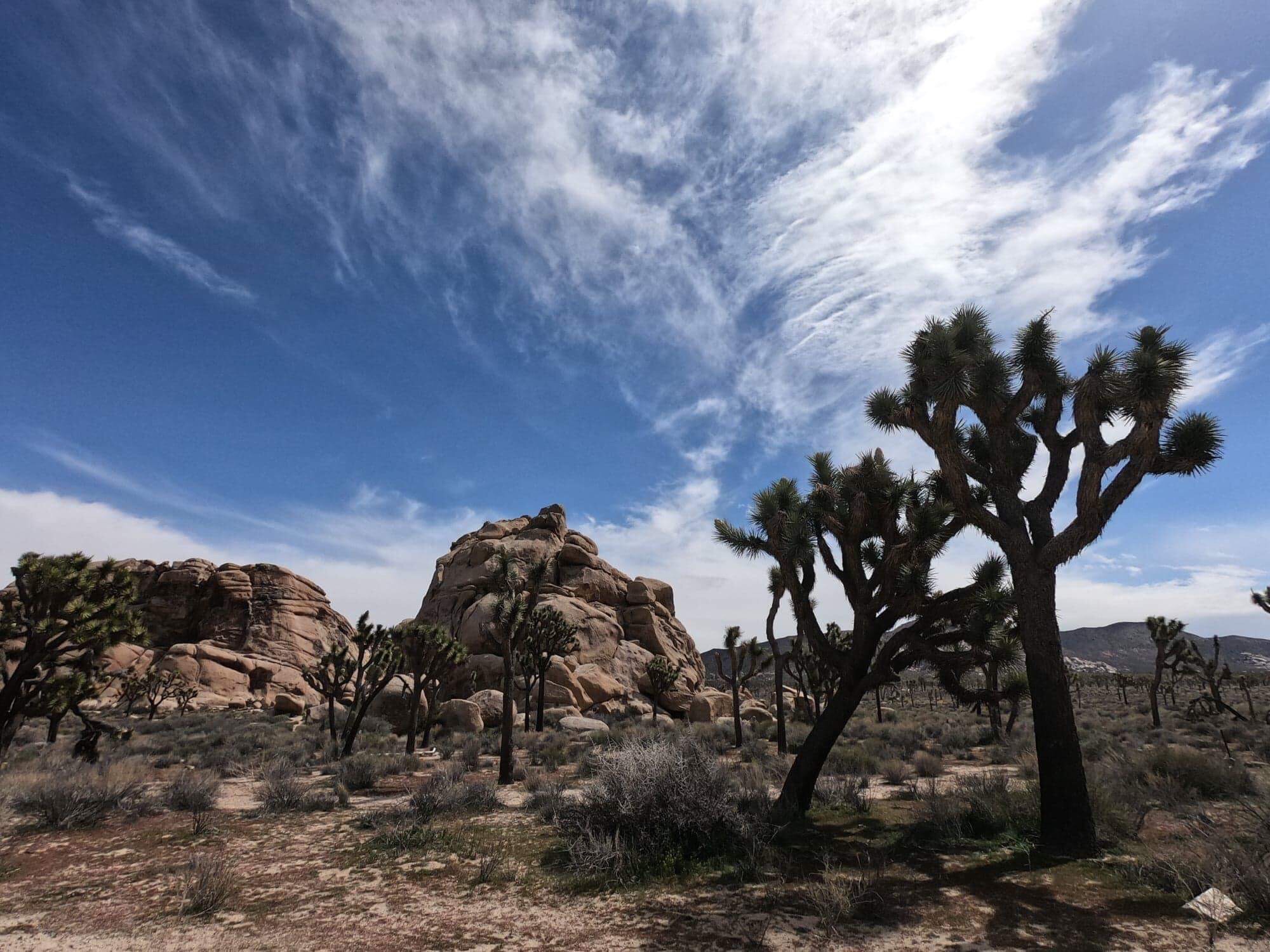 Le parc national de Joshua Tree englobe dans sa moitié Ouest le désert de Mojave et dans sa moitié Est le désert du Colorado. Il doit son nom à l’arbre que l’on retrouve le plus dans le parc, le fameux Joshua Tree :