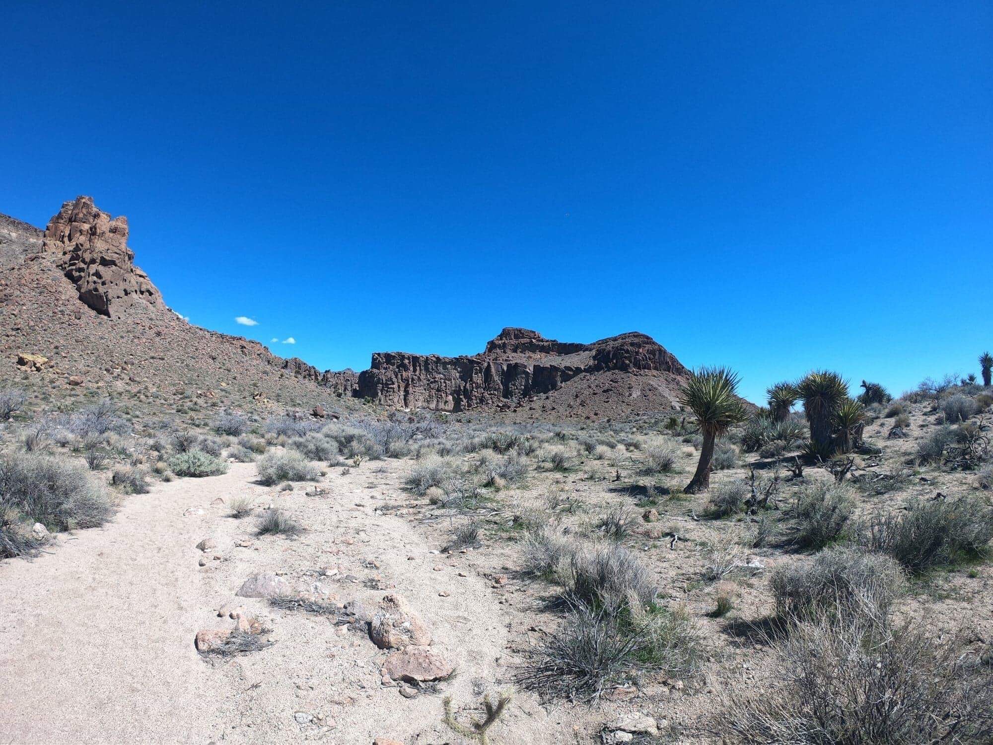 La zone dans laquelle on retrouve le plus de Joshua Tree dans le parc est la zone de « Hidden Valley » au nord ouest. Pour ne pas trop nous reposer non plus (faudrait pas abuser quand même !) nous avons prévu une petite randonnée dans cet endroit. Nous avons choisi le « Lost Horse Mine Trail« , qui fait 10,6km. Le descriptif était assez vendeur, passer entre les Joshua Tree puis auprès d’une ancienne mine qui était parmi les plus grosses pour les chercheurs d’or. Au final, grosse déception, le paysage est toujours le même (mis à part à la fin ou ENFIN nous traversons parmi les arbres de Joshua), et les restes de la mine sont protégés et éloignés du sentier du trail. Bon, ça aura au moins le mérite de nous avoir fait marcher nos 10km réglementaires !