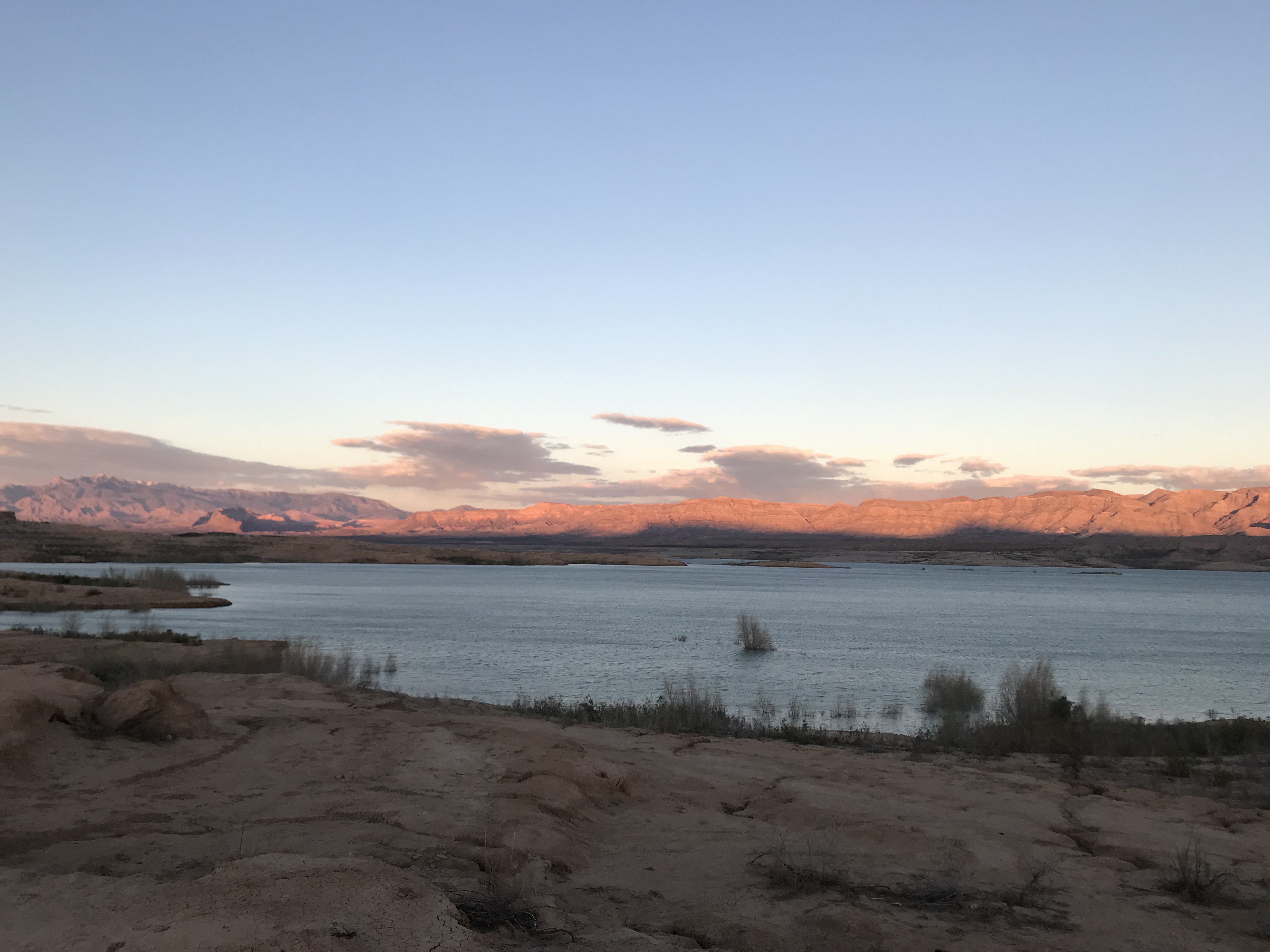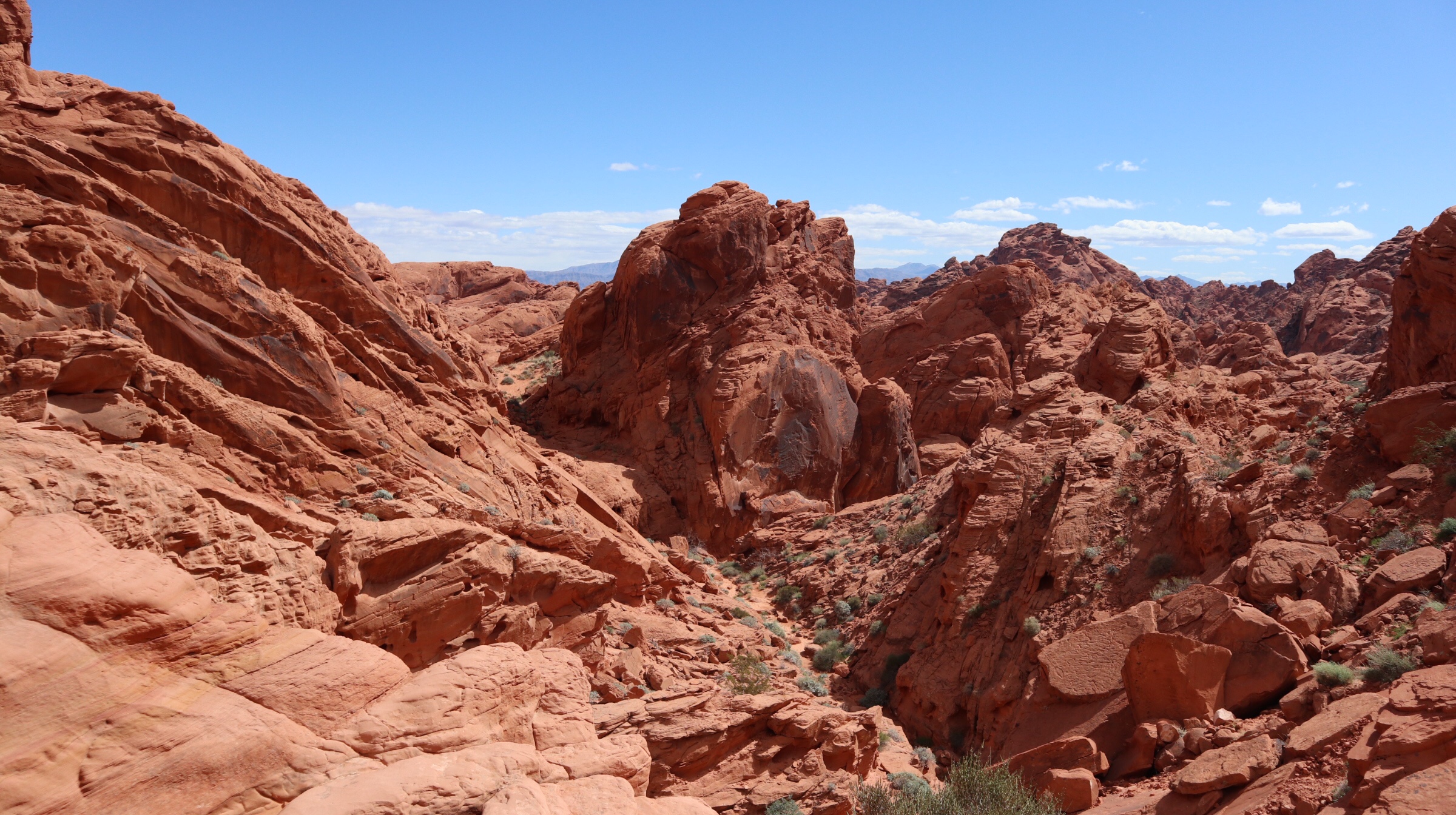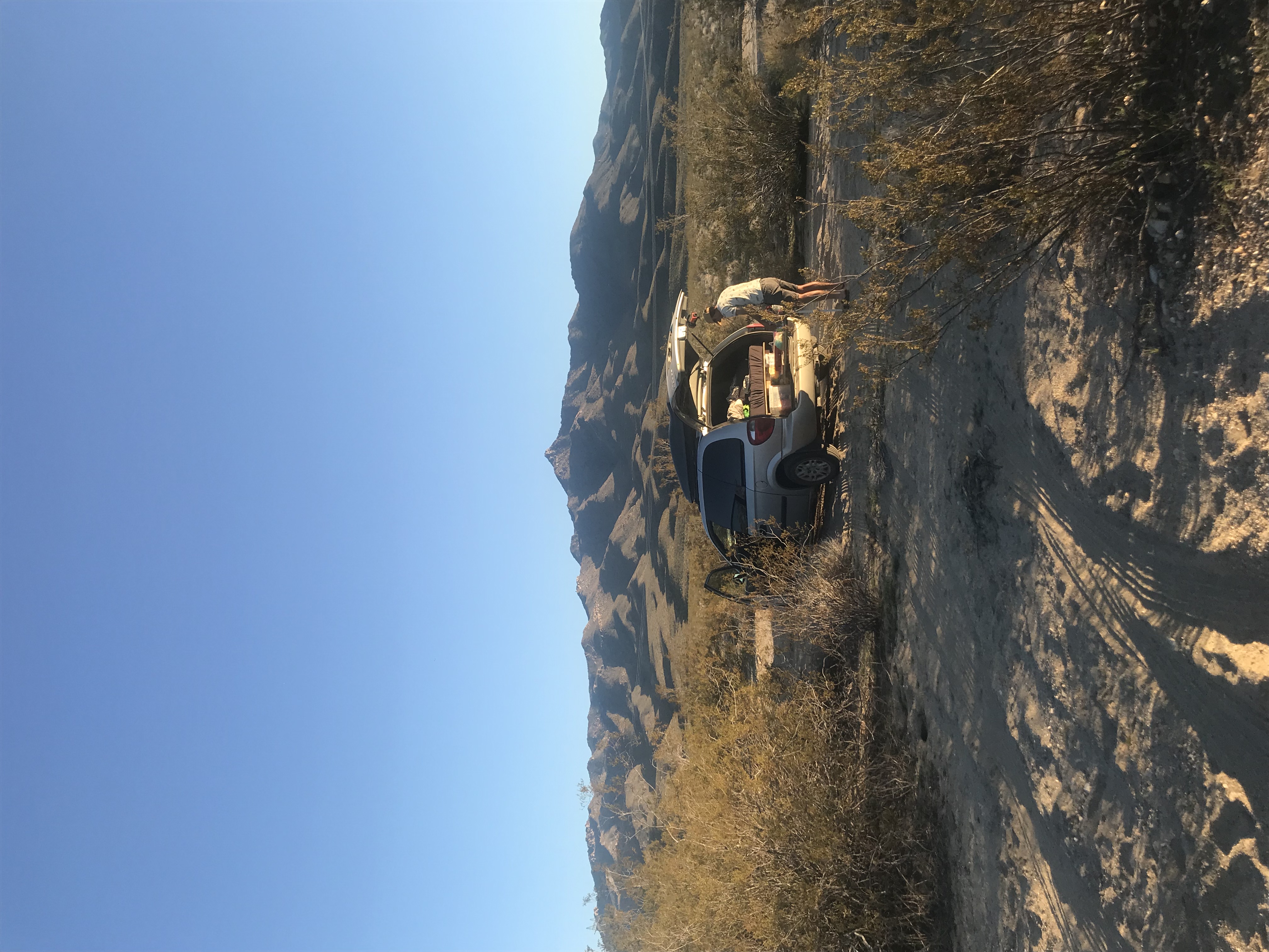⁃Que faire : finalement, il y a peu de randonnées dans le Mojave National Preserve. Pour la plus grosse part, ce sont plutôt des petites marches, amenant à de beaux points de vue. Toujours à la recherche d’exploits physiques (il faut bien les meriter les apéro tous les soirs), nous nous engageons sur le plus gros trail du parc : 25,6km reliant les deux campings, de Mid-Hill jusqu’à Hole-in-The–Wall. Nous nous sommes dit qu’une marche d’une journée nous permettait de nous faire une bonne idée du parc. À qui le dites vous ! Nous avons été en fait assez déçus, le paysage varie très peu (on passe du désert à des roches, puis des roches à du désert), et il est assez difficile parfois de trouver les panneaux de signalisation, tombés à cause du vent.