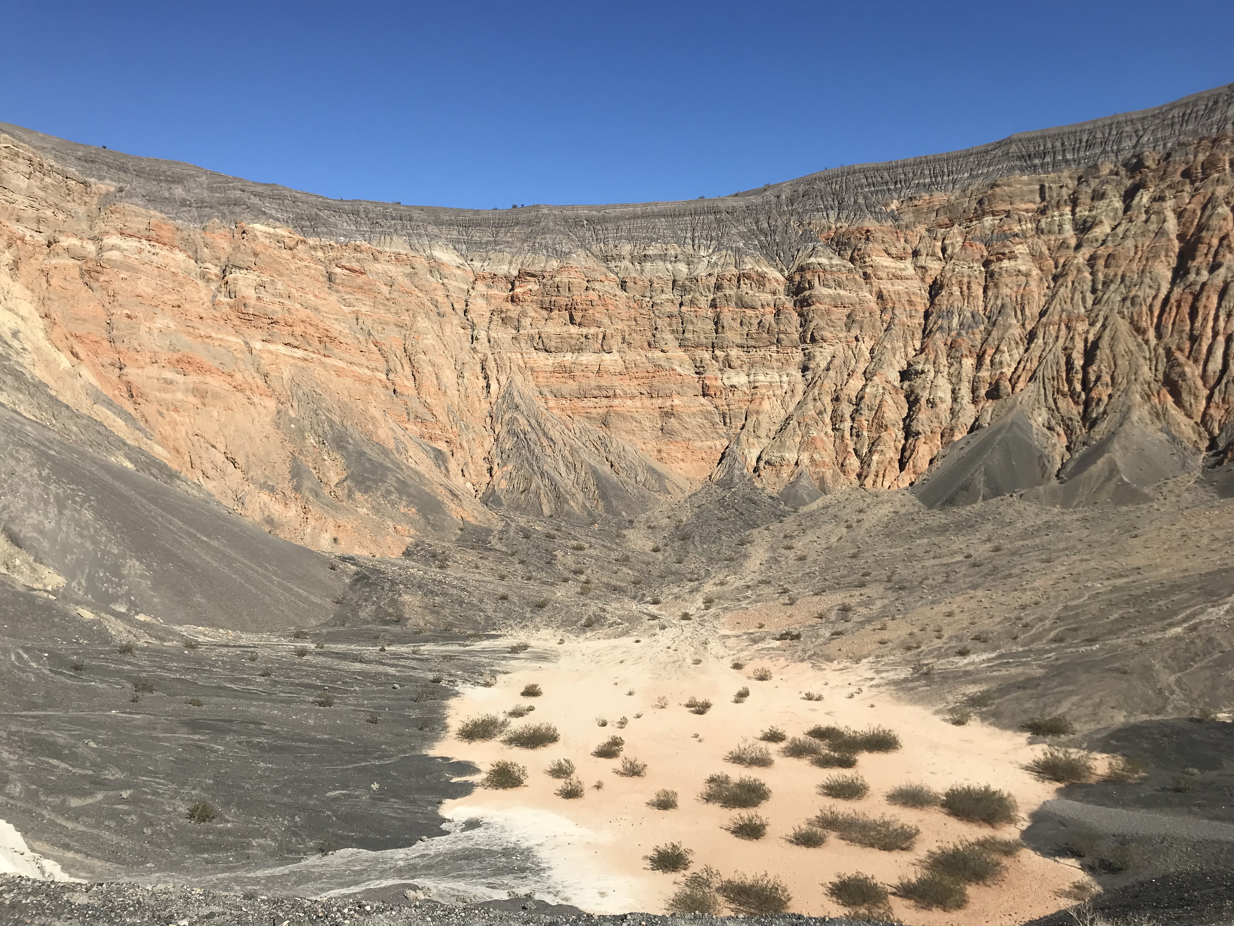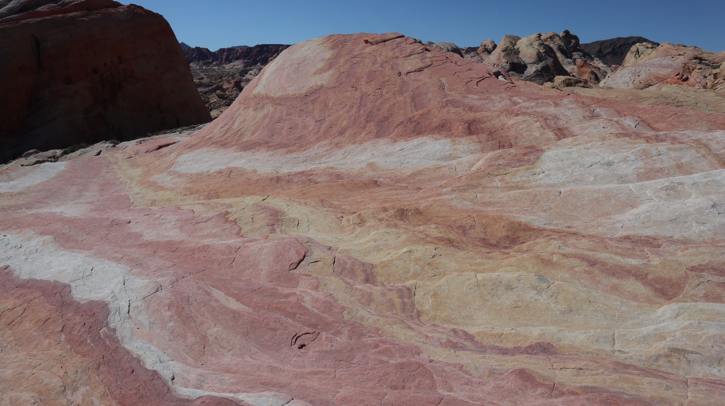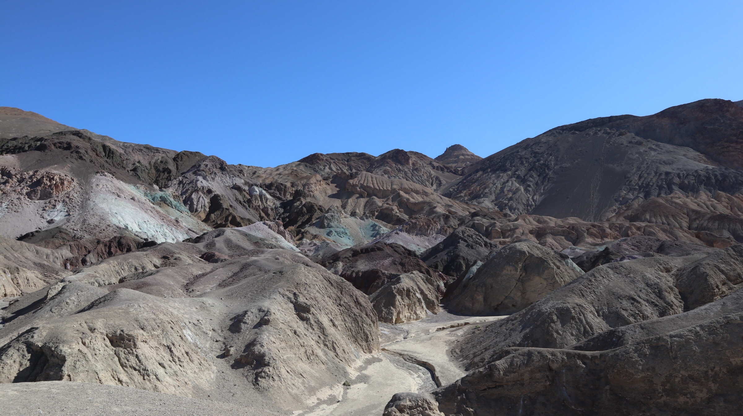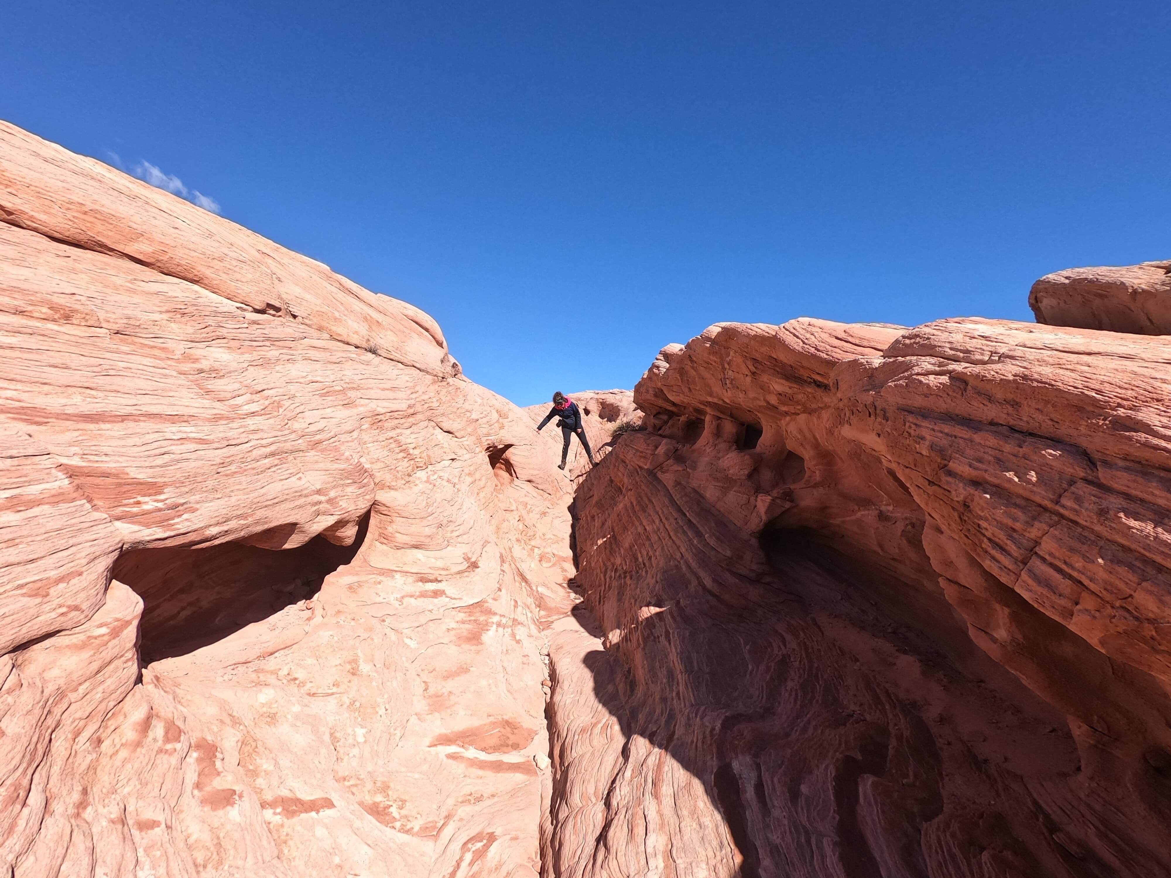 ⁃Que faire : finalement, il y a peu de randonnées dans le Mojave National Preserve. Pour la plus grosse part, ce sont plutôt des petites marches, amenant à de beaux points de vue. Toujours à la recherche d’exploits physiques (il faut bien les meriter les apéro tous les soirs), nous nous engageons sur le plus gros trail du parc : 25,6km reliant les deux campings, de Mid-Hill jusqu’à Hole-in-The–Wall. Nous nous sommes dit qu’une marche d’une journée nous permettait de nous faire une bonne idée du parc. À qui le dites vous ! Nous avons été en fait assez déçus, le paysage varie très peu (on passe du désert à des roches, puis des roches à du désert), et il est assez difficile parfois de trouver les panneaux de signalisation, tombés à cause du vent.