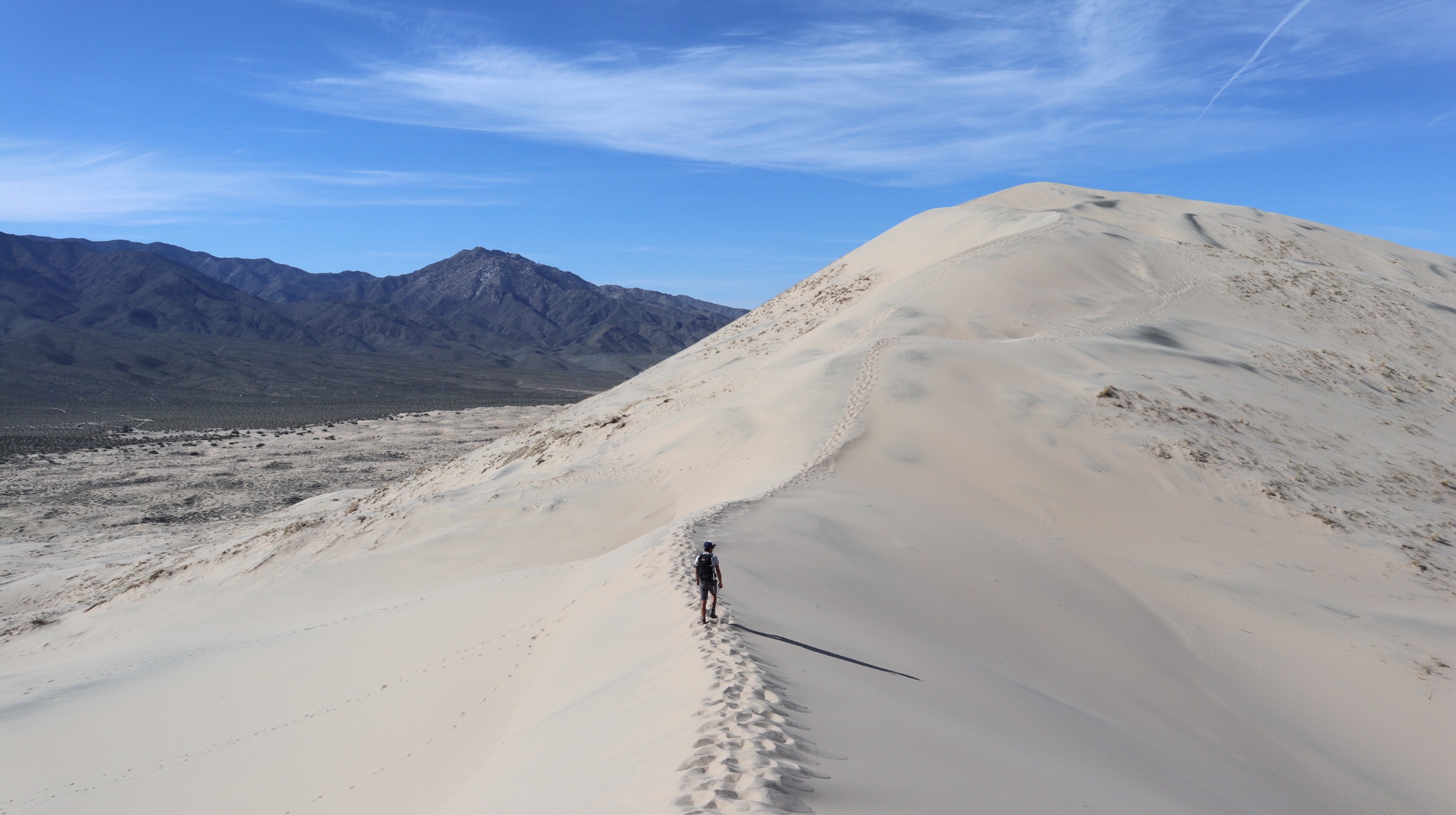 La seconde rando que nous avons fait dans le parc est l’ascension des dunes de sable, les Kelso Dunes, pour un total d’environ 5km.