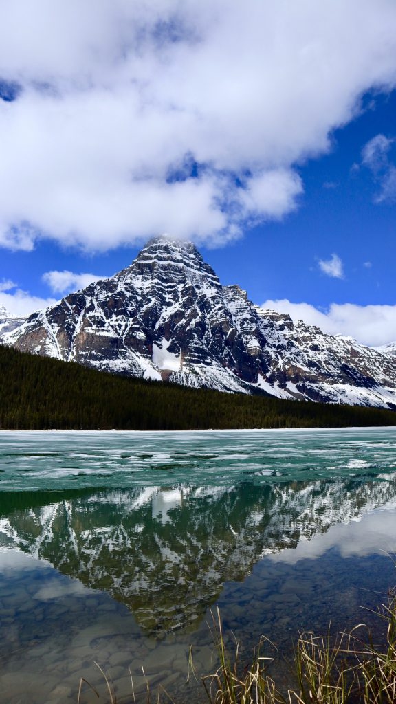 Encore une fois pour nous, tous les lacs de la Icefields Parkway étaient gelés à notre passage, ou en partielle fonte de glace, nous n’avons donc pas pu réellement en apprécier la belle couleur turquoise. Néanmoins pas vraiment de regrets car la neige ajoutait un autre charme au paysage. Les arrêts incontournables sont sans aucun doute :
