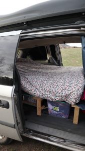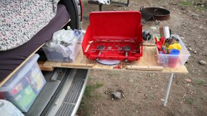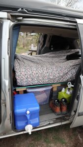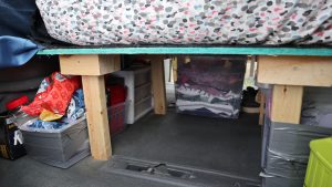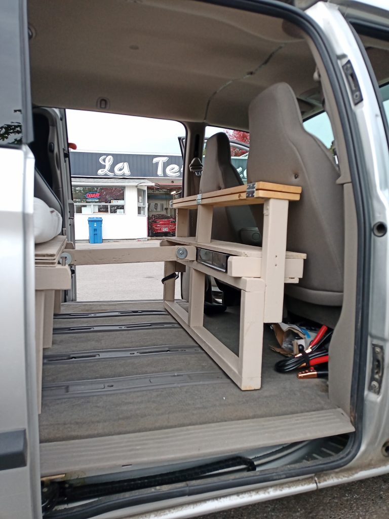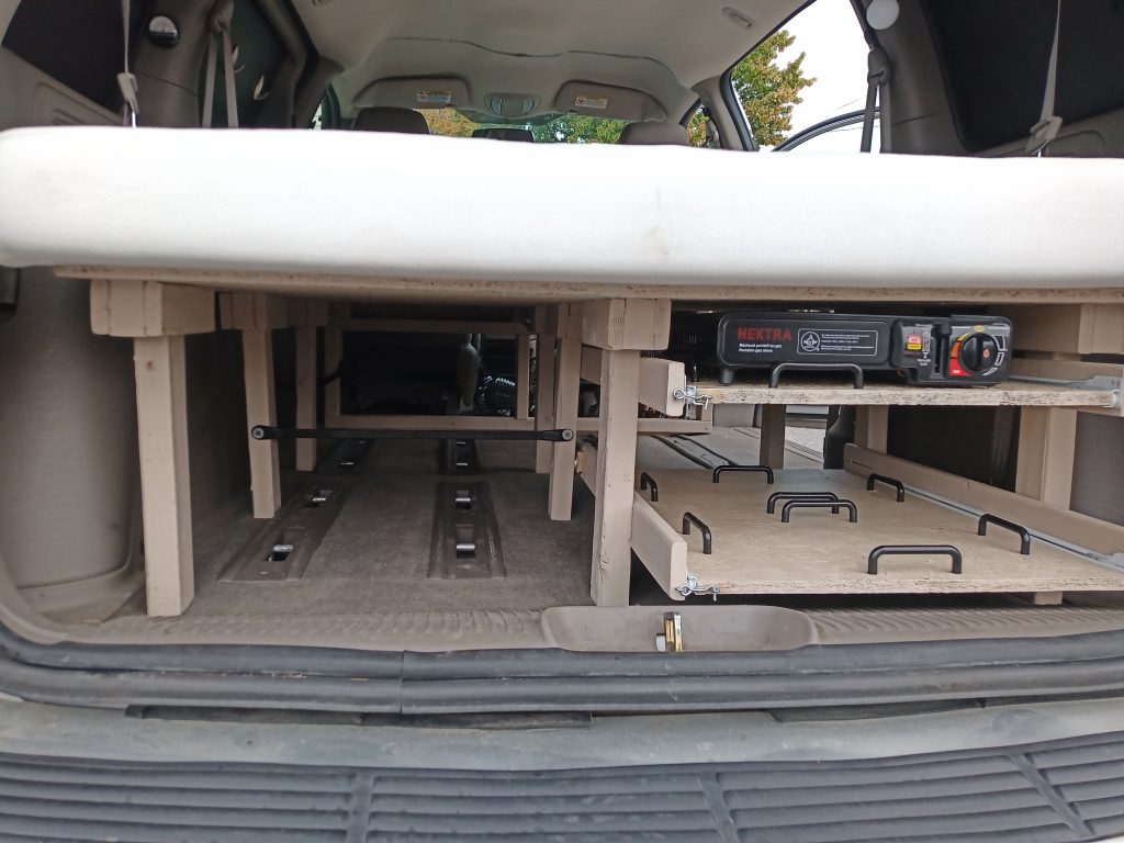 Coupe latérale Droite Table intérieur Demi sous-sol Tiroir cuisine Plan arrière Aménagement « pluie » Aménagement « pluie et table » Rideau magnétique Passage en mode « lit » Mode lit