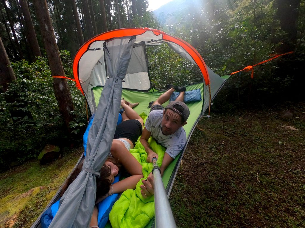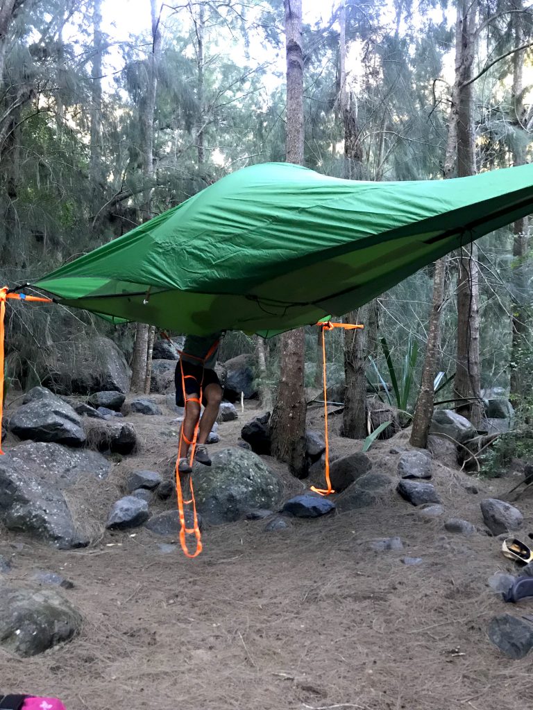 Côté confort, pas besoin de matelas gonflable comme dans une tente typique, le côté hamac est très agréable pour y poser seulement son sac de couchage et y dormir comme un bébé.