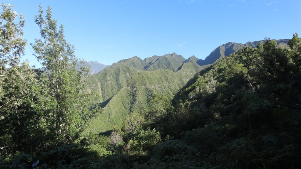 Nous n’avons pas pris de réel plaisir durant cette ascension, que nous avions hâte de terminer. Seule la toute première partie, après 1km, donne une vue incroyable sur les montagnes à notre gauche, et la ville d’Entre-Deux, derrière-nous.