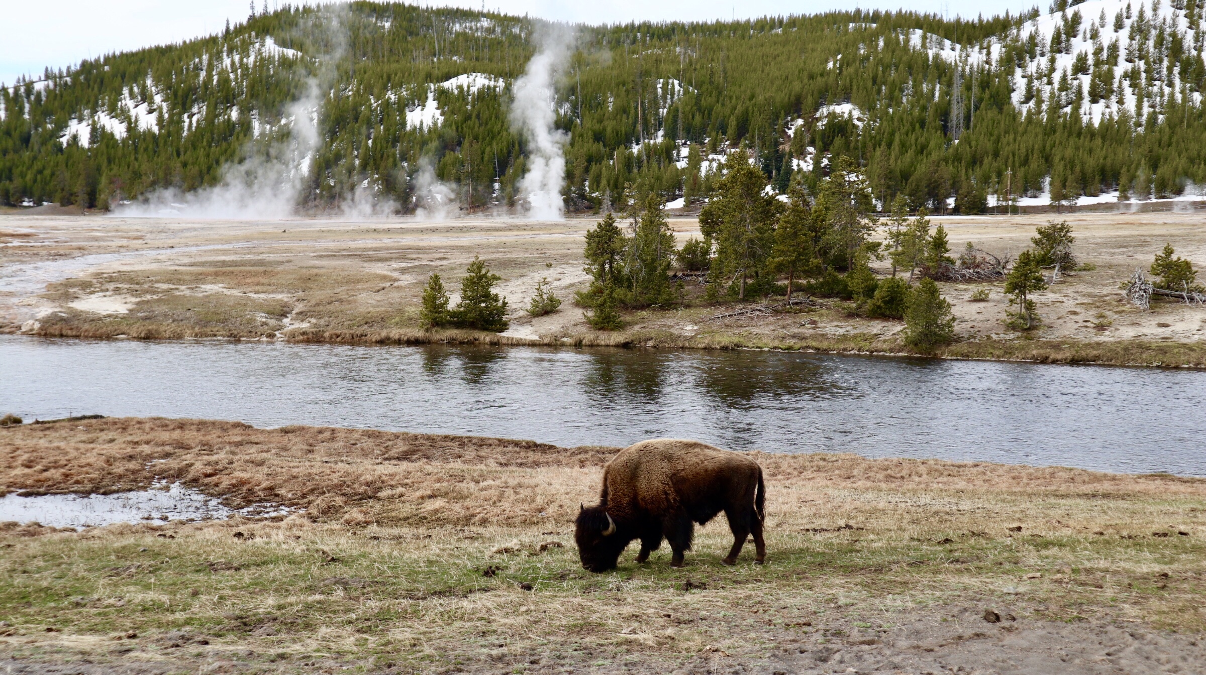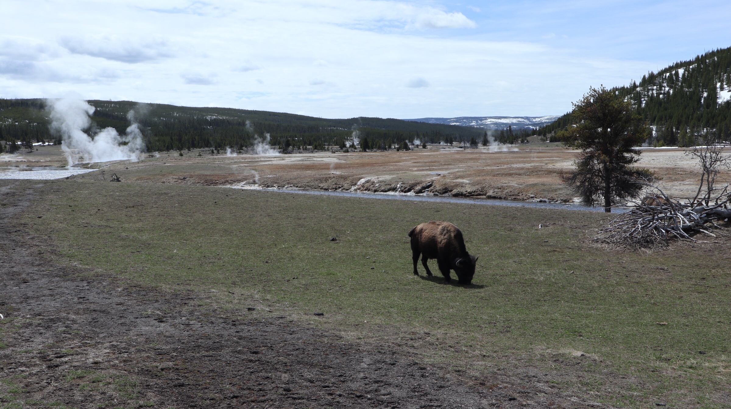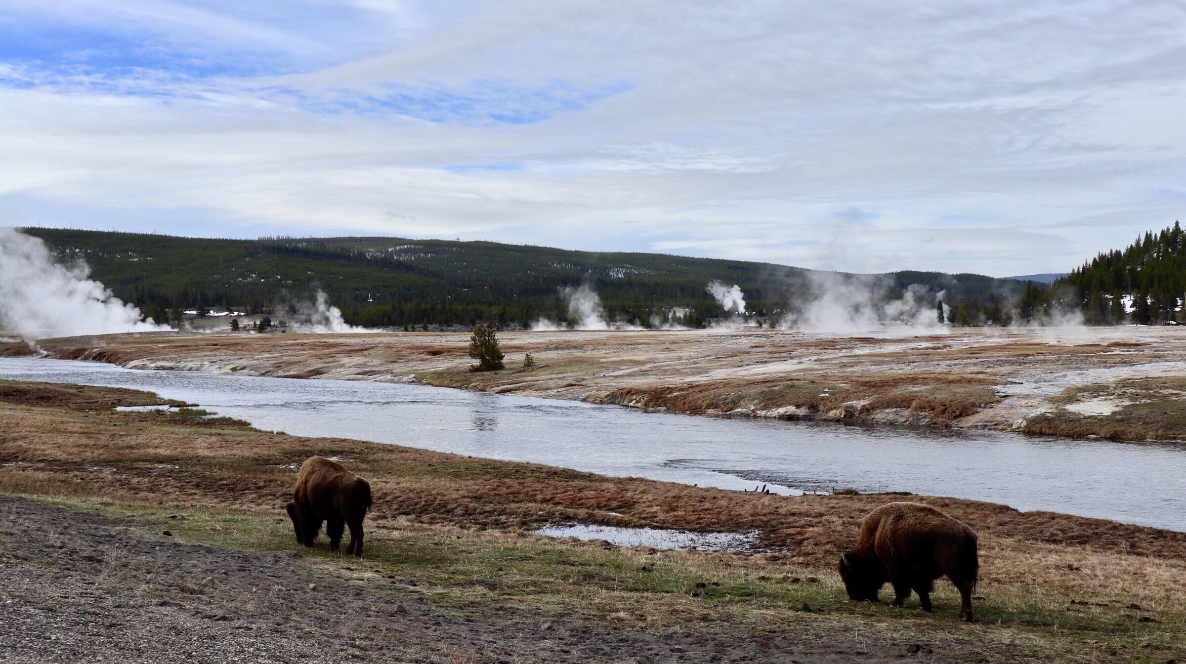 L’ambiance est magique ! En plus, si l’on est assez chanceux, on peut observer des bisons manger, entre deux geysers.