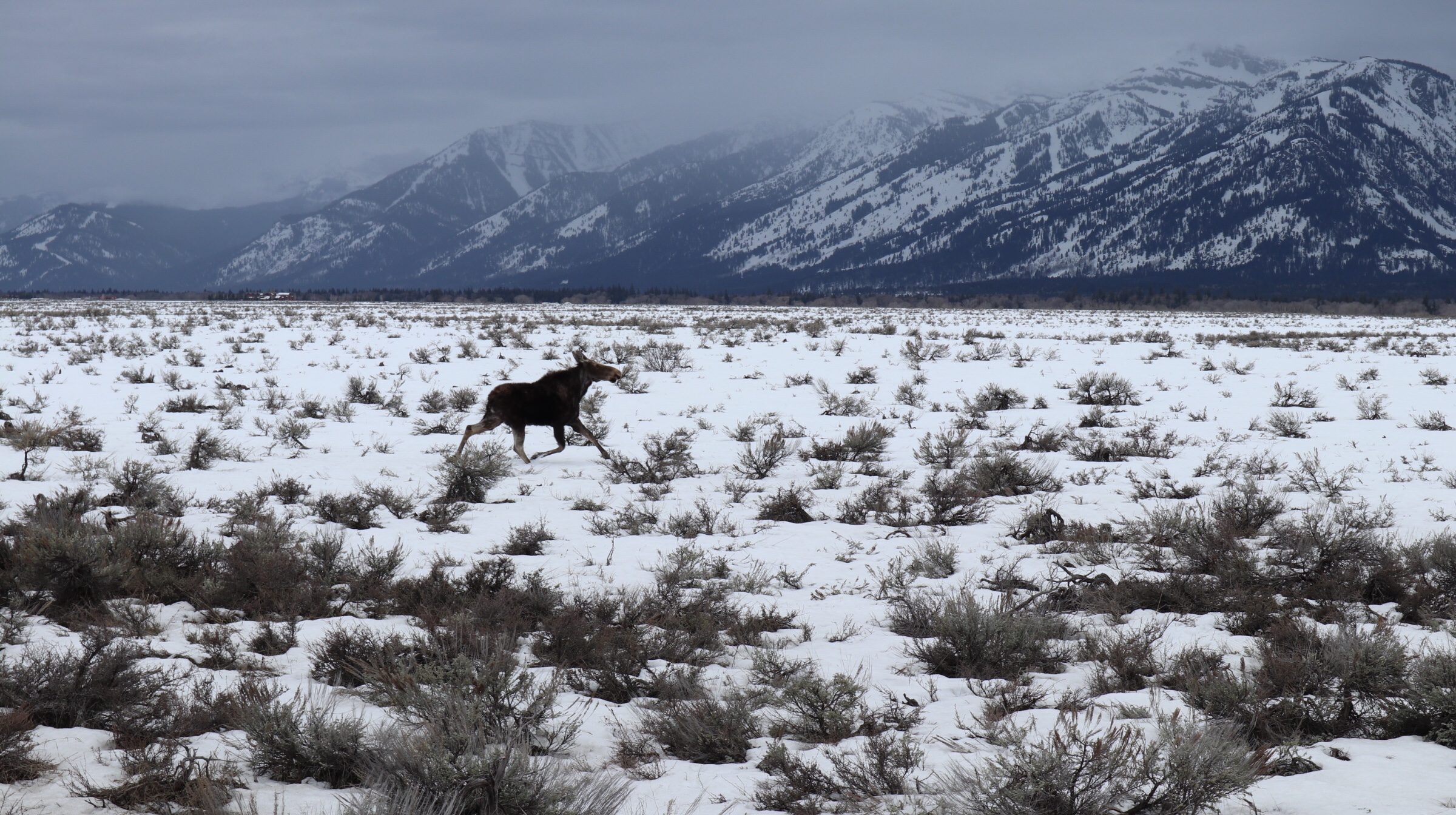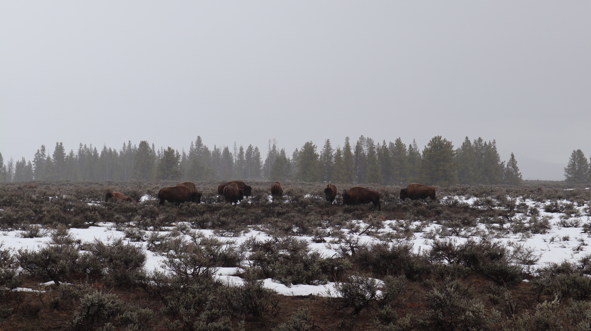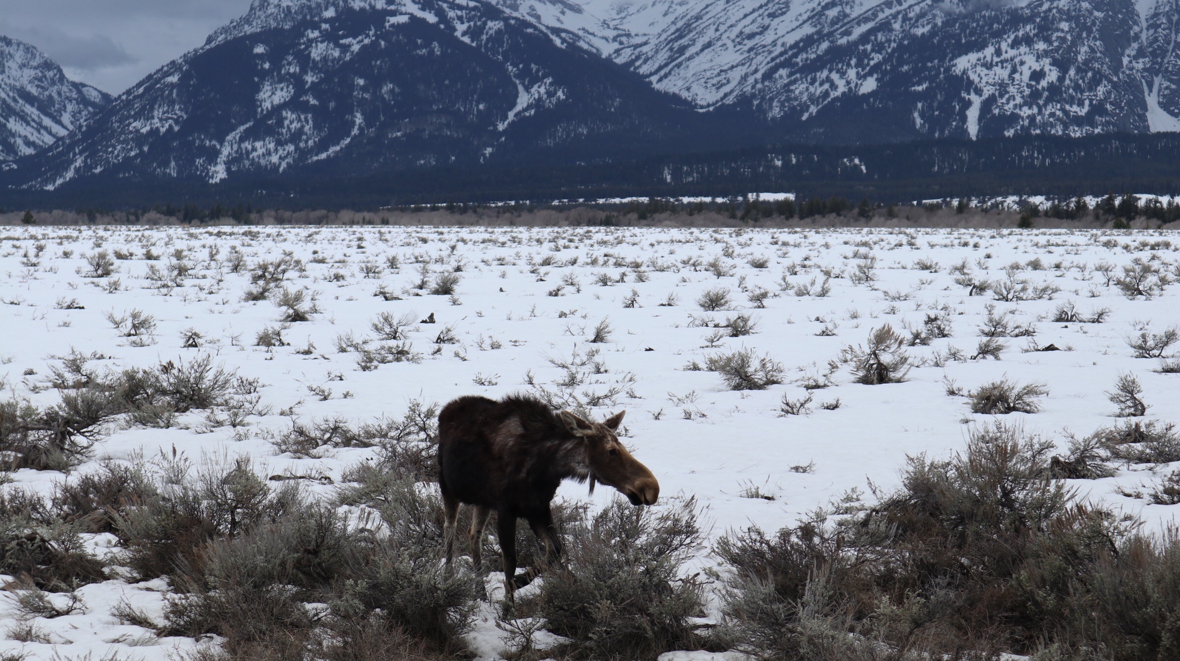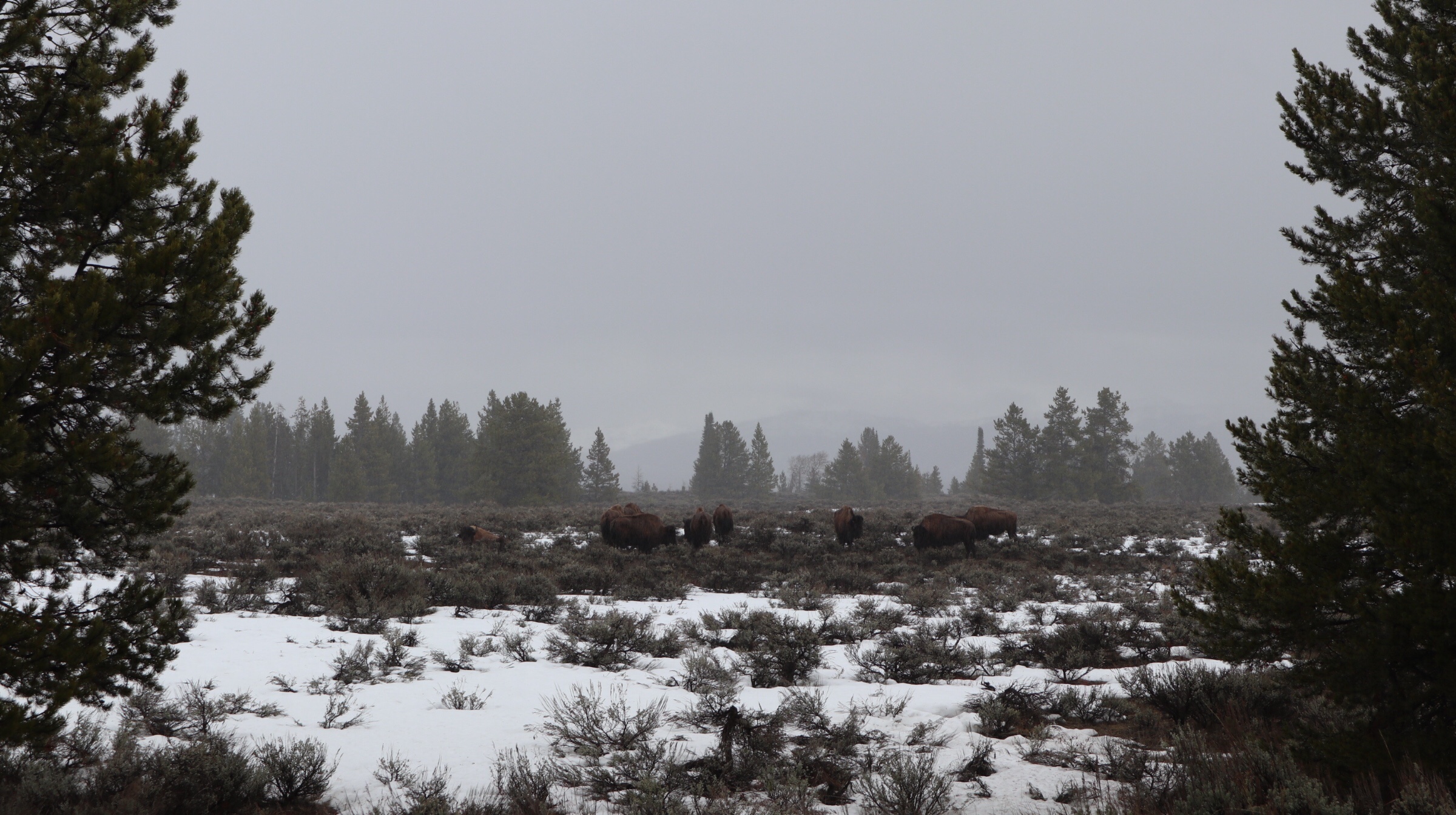 Au moins, le mauvais temps nous a permis de nous reposer durant deux jours, ce n’était pas de trop a plus de la moitié de notre road trip. Finalement, à Grand Teton avant la période estivale, la seule possibilité pour se balader est d’emprunter à pieds ou en vélo la portion de la Teton Park Road qui est ouverte. En voiture, nous avons également emprunté la « Gros Ventre Road » (charmant n’est ce pas ?!), plus sauvage et moins fréquentée, où nous avons pu voir quelques orignaux et des bisons !