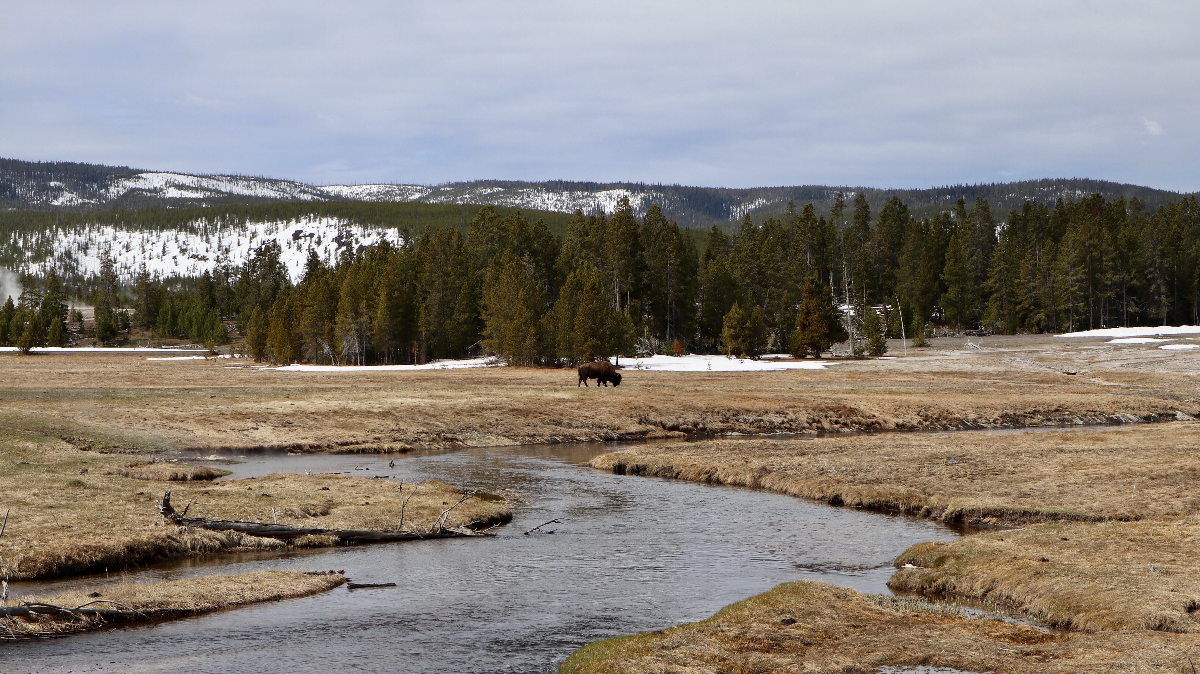 À voir/ À faire : à l’entrée, la ranger nous a informé que seulement deux routes dans le parc étaient ouvertes à cette période de l’année (tenant compte de la neige… encore et toujours !). Nous avions donc accès aux secteurs de Old Faithful, au sud du parc, là où se trouve les geysers et les attractions les plus connues, mais aussi au secteur de Mammoth Hot Springs, au nord, qui est ouvert à l’année. La route entre ces deux secteurs fait 83km.