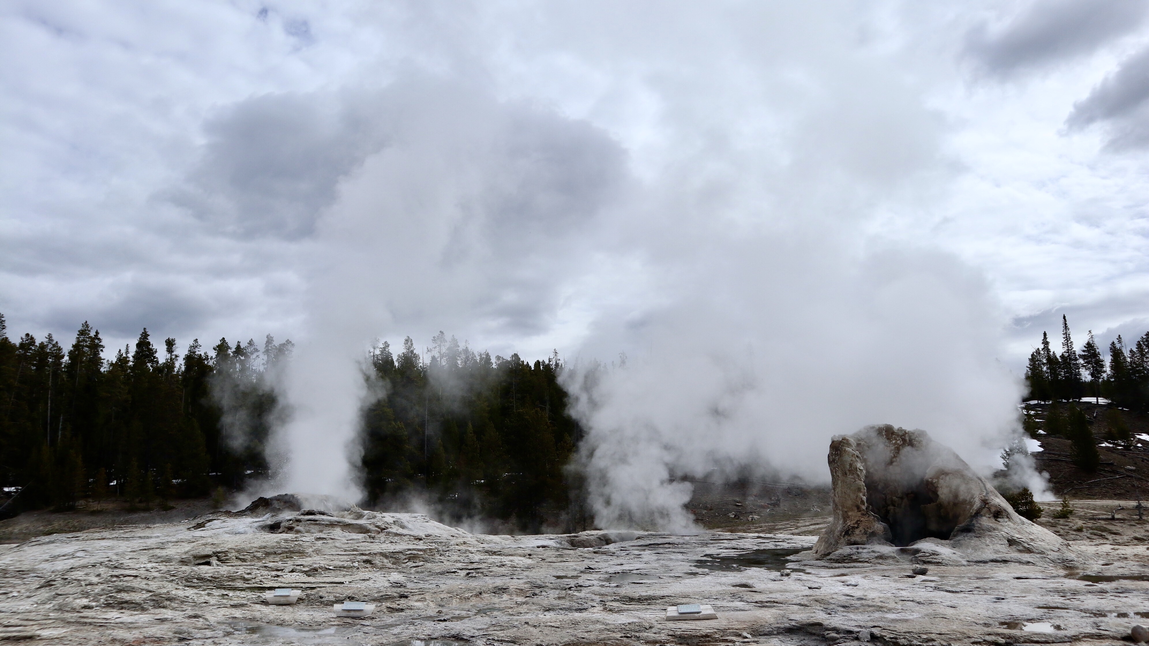 C’est impressionnant, d’autant plus qu’il s’agit du geyser le plus connu du parc. C’est également le plus prévisible puisqu’il se réveille toutes les 60 a 110 minutes.