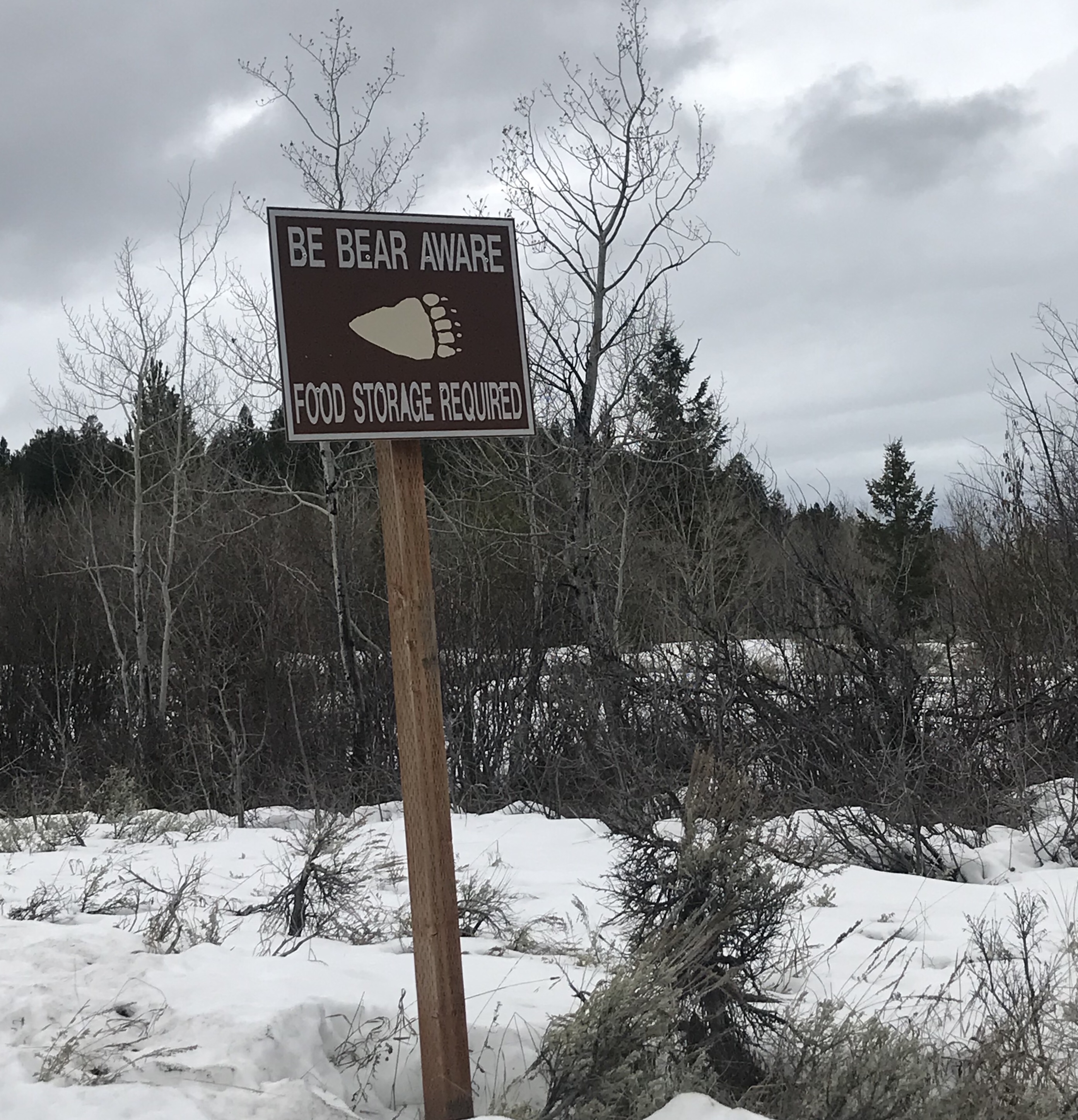 Où dormir : à Jackson Hole, la ville qui précède le parc au sud, il y a de nombreux hôtels, Lodge et RV Park. Nous, on n’est pas du genre à payer pour dormir dans notre van vous le savez bien ! Nous avons trouvé un emplacement en bordure du parc, dans la Bridger Teton National Forest, où l’on peut camper gratuitement. Néanmoins avec la neige, difficile de trouver un endroit dégagé et de savoir où était exactement la frontière avec le parc, où il est interdit de faire du camping sauvage. Le lendemain matin de notre première nuit, un policier est venu faire un tour. Très gentil, nous avons bien discuté tous les deux, il m’a informé que nous pouvions dormir ici mais qu’il n’en était pas certain… bon ! Il m’a également indiqué qu’un grizzly avait été aperçu dans les parages depuis quelques jours, qu’il fallait rester vigilant et sortir toujours avec son « Bear Spray », sorte de bombe au poivre géante pour les ours. Du coup, je n’étais plus très sûre de vouloir rester dormir ici…